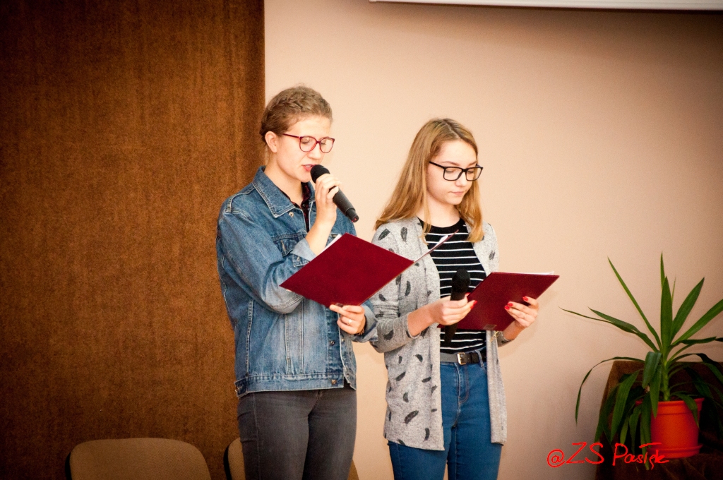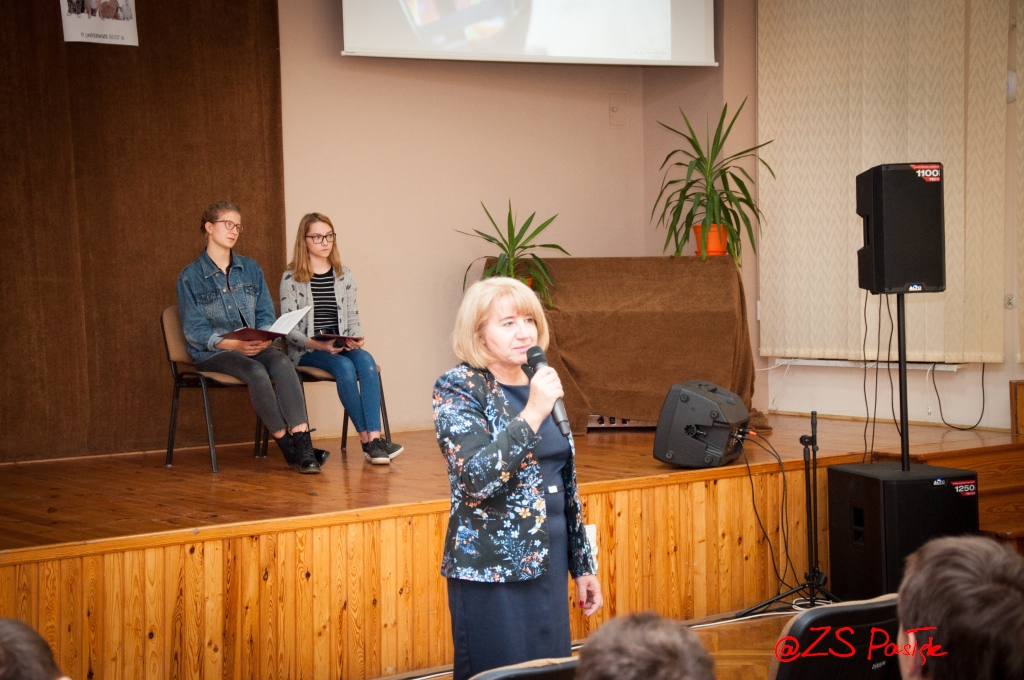 Uroczystość zainaugurowała dyrektor Elżbieta Wasiuk, która podziękowała za pracę i zaangażowanie opiekunom i uczniom działającym w szkolnym wolontariacie. Panie Agata Celka - inspektor Warmińsko-Mazurskiego Stowarzyszenia Obrońców Praw Zwierząt im. Św. Franciszka z Asyżu oraz wieloletnia wolontariuszka i absolwentka naszej szkoły Klaudia Kłosińska opowiedziały o działalności schroniska „Psi Raj” w Pasłęku. Na zakończenie zebrani obejrzeli film ilustrujący pracę naszych wolontariuszy w schronisku, szpitalu, placówce opiekuńczo-wychowawczej w Marwicy oraz w przedszkolu.