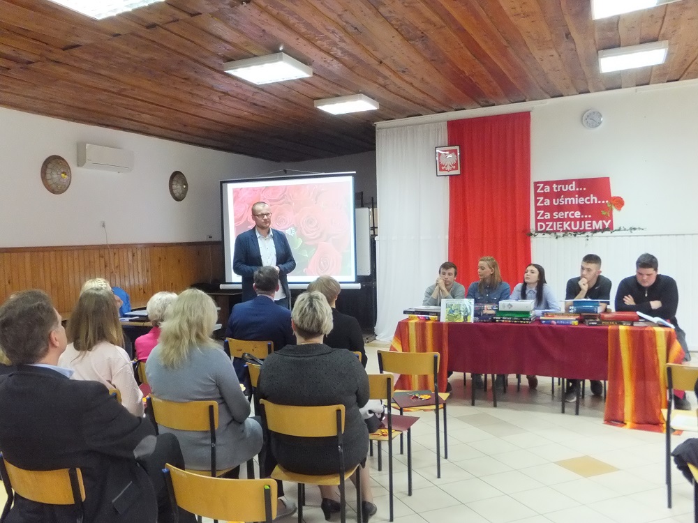 Natomiast słuchacz III klasy gimnazjum Sebastian Jarmoliński zaśpiewał swoją autorską energetyczną piosenkę – w ten sposób wyrażając wdzięczność za nauczycielską pomoc przy rozwiązywaniu uczniowskich życiowych problemów.