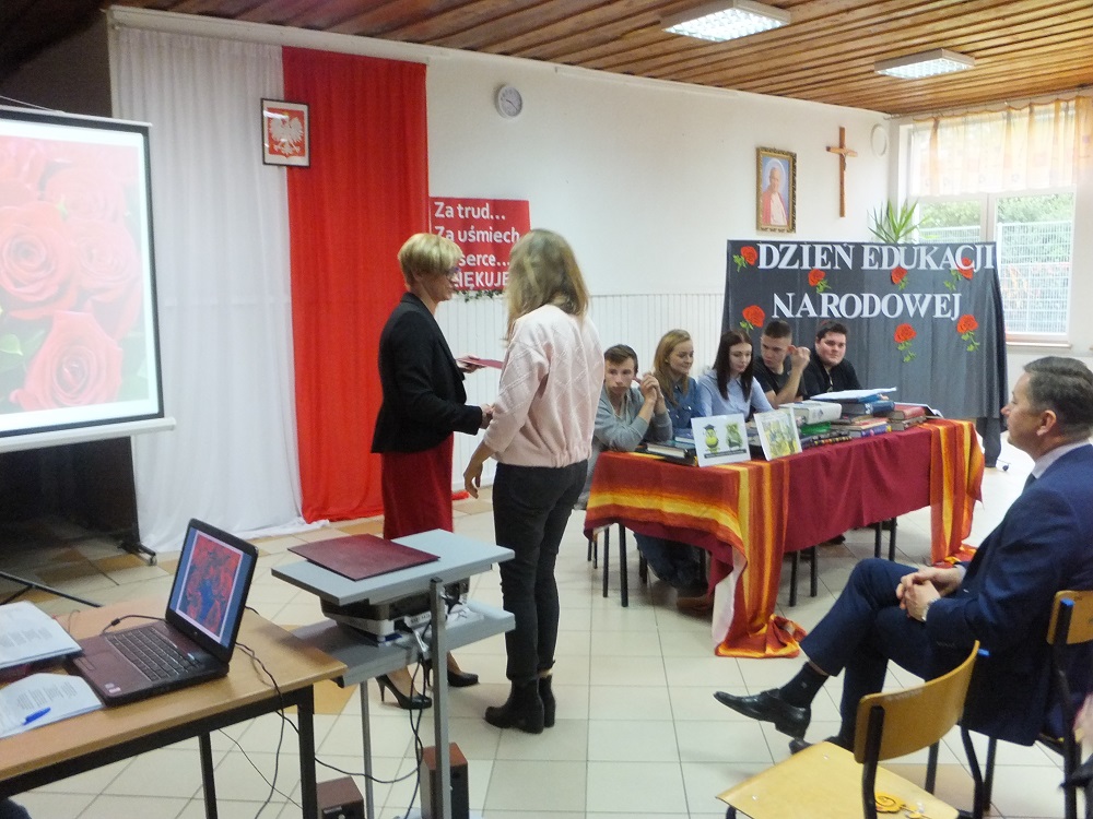 Akademia rozpoczęła się odśpiewaniem hymnu państwowego. Oprawę artystyczną, pod opieką nauczycielki języka polskiego Małgorzaty Wolskiej, przygotowali słuchacze szkoły, w której i na poważnie, i na wesoło, wierszem i piosenką podziękowano wszystkim pracownikom za trud włożony w edukację i wychowanie oraz za troskę, wyrozumiałość i cierpliwość okazywaną im każdego dnia. Słuchacze wręczyli nauczycielom własnoręcznie przygotowane przez siebie upominki w postaci pomalowanych i ozdobionych techniką decoupage kwiatów z drewna.
