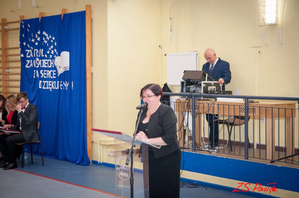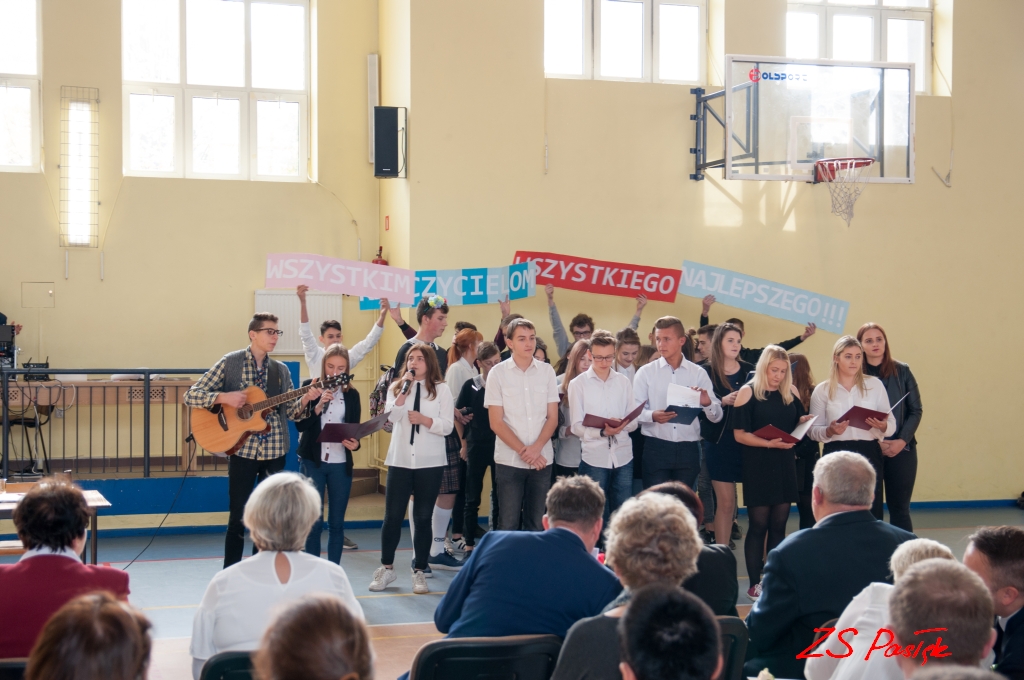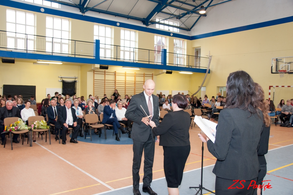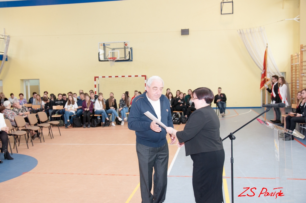 Z tej oto właśnie okazji w Zespole Szkół w Pasłęku został przygotowany uroczysty apel, w którym wzięli udział wszyscy pracownicy szkoły, uczniowie i zaproszeni goście, wśród których znaleźli się Wicestarosta Powiatu Elbląskiego p. Zbigniew Lichuszewski, Naczelnik Wydziału Promocji Powiatu, Edukacji, Kultury i Sportu p. Gabriela Effenberg, Członek Zarządu Powiatu p. Joanna Naspińska, przewodnicząca rady rodziców p. Urszula Tyszecka oraz prezes ZNP p. Kazimierz Jacek.