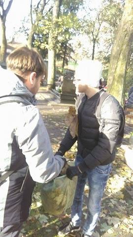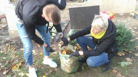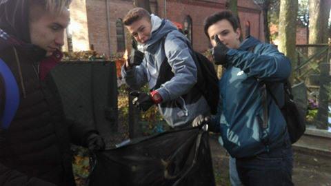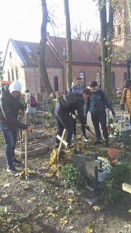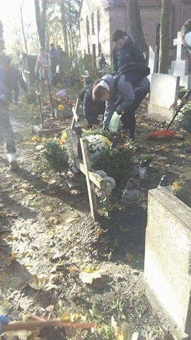 Uczniowie Zespołu Szkół w Pasłęku porządkują groby na pasłęckim cmentarzu
