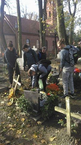 1 listopada to czas zadumy nad przemijaniem, czas wspomnień o tych, którzy odeszli. Dlatego we wtorek 31 października 2017 roku w Zespole Szkół w Pasłęku uczniowie klasy drugiej technikum logistycznego wraz z nauczycielem Agnieszką Wojczys porządkowali opuszczone i zapomniane mogiły na pasłęckim cmentarzu. Wyposażeni w rękawiczki, worki na śmieci, grabie, motyczki usuwali z nagrobków chwasty i liście oraz zapalili znicze. Sprzątanie mogił przed Wszystkimi Świętymi jest staropolską tradycją, którą należy podtrzymywać.