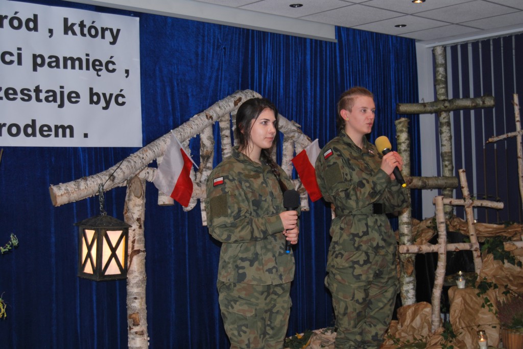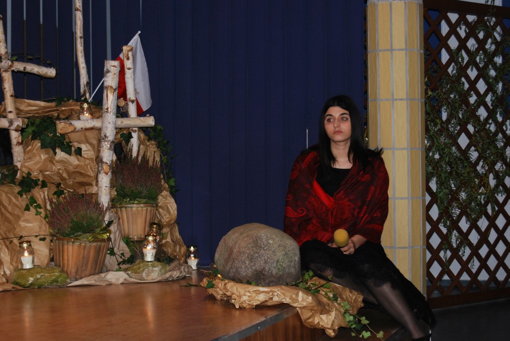 Akademia odbyła się w pięknej scenerii wykonanej z pomocą jednego z rodziców - p. Weroniki Ozgi-Zajło. Występ młodzieży był wzruszający. Na wielu twarzach widoczna była zaduma.