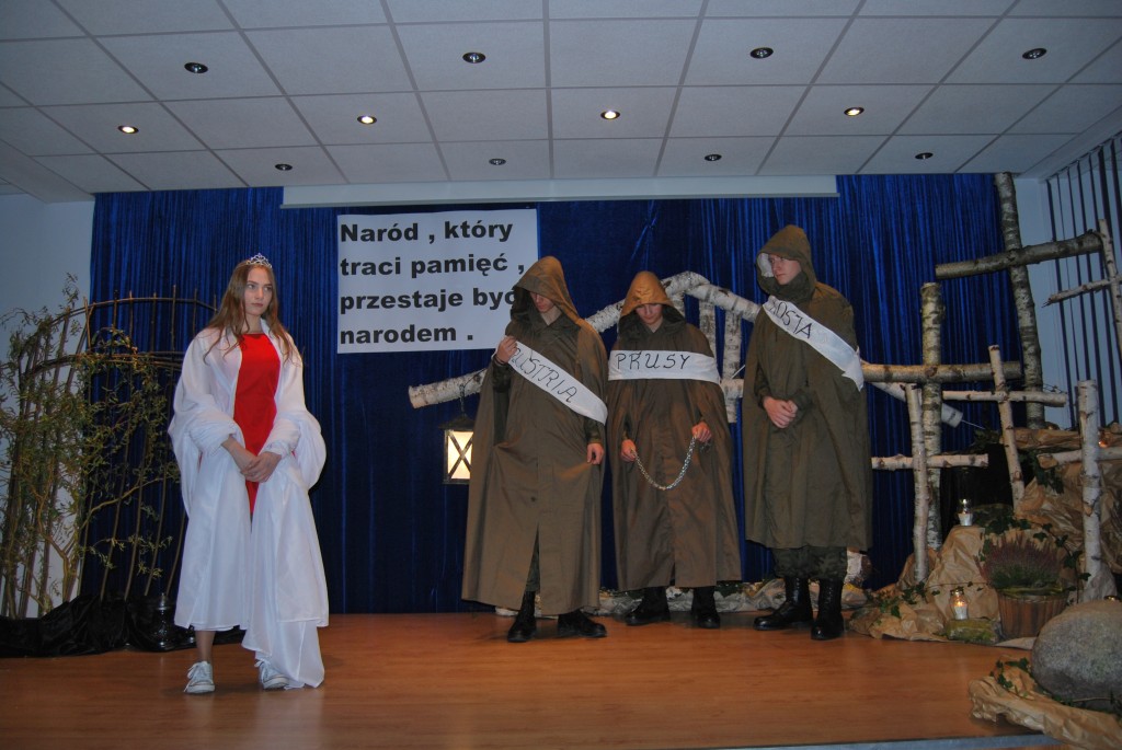 Część artystyczna została przygotowana przez uczniów klasy pierwszej LO o ukierunkowaniu obronnym pod opieką wychowawcy Moniki Kucińskiej oraz majora Bolesława Czechowskiego. Była to niesamowita lekcja historii przypominająca drogę Polaków do odzyskania niepodległości. W skrócie zobrazowano sytuację polityczną kraju, jaka miała miejsce przed odzyskaniem przez Polskę niepodległości. Jednak największy nacisk położono na pokazanie ducha narodu polskiego, który w czasie 123 lat niewoli stale wychodził z inicjatywą walki za ojczyznę. Młodzież przygotowała wiersze i pieśni, także te patriotyczne.