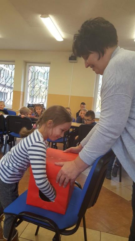 - JESIENNE GRZYBOBRANIE – grupy zbierały do koszyczków grzybki przyklejone w auli.
