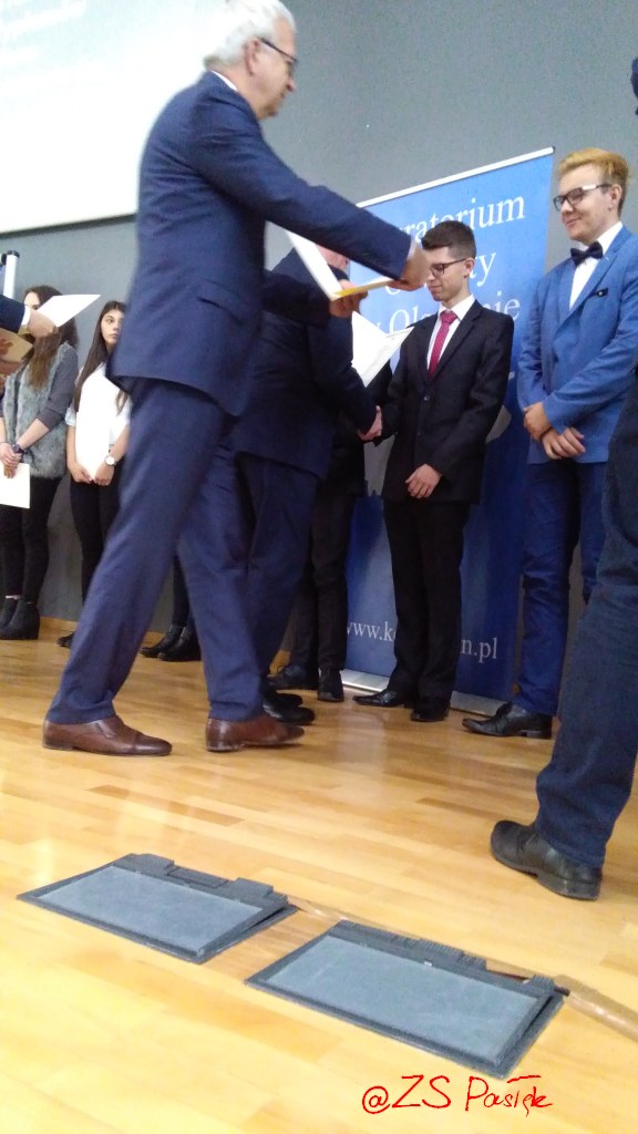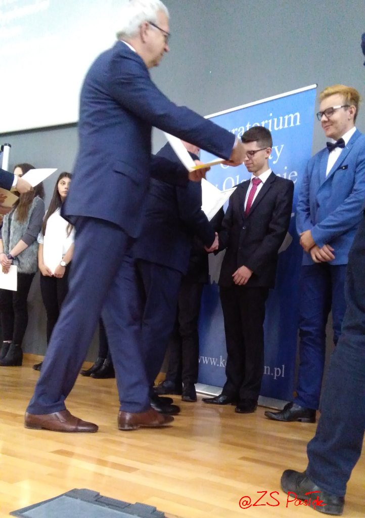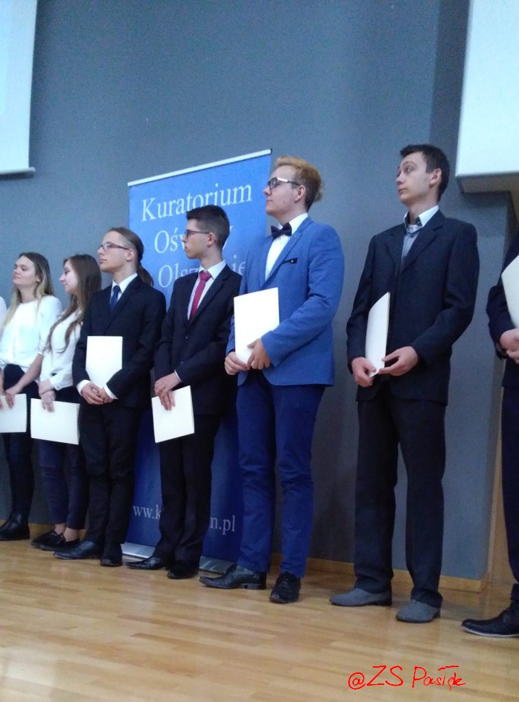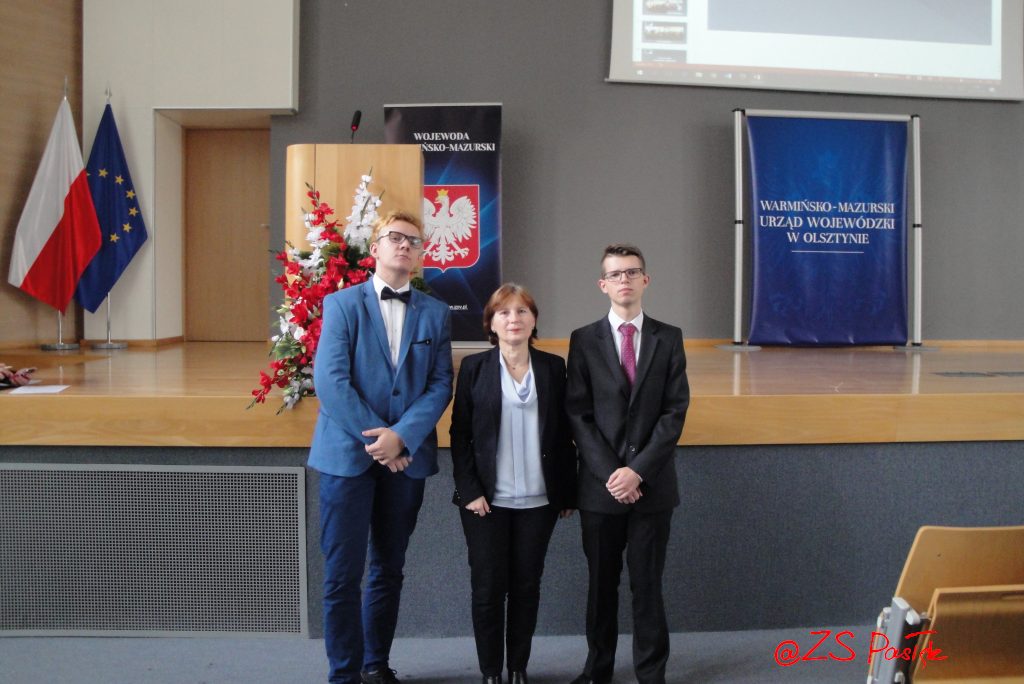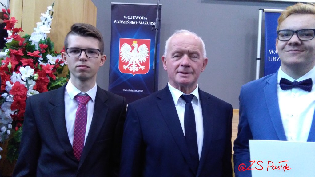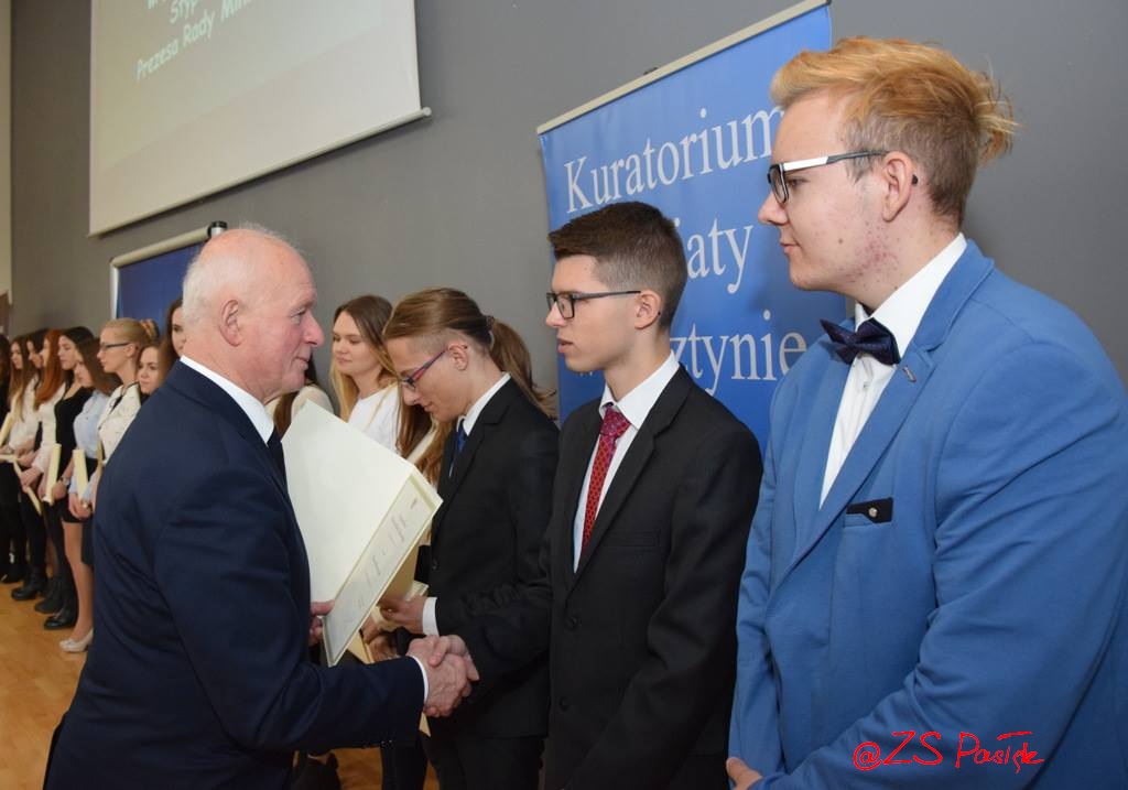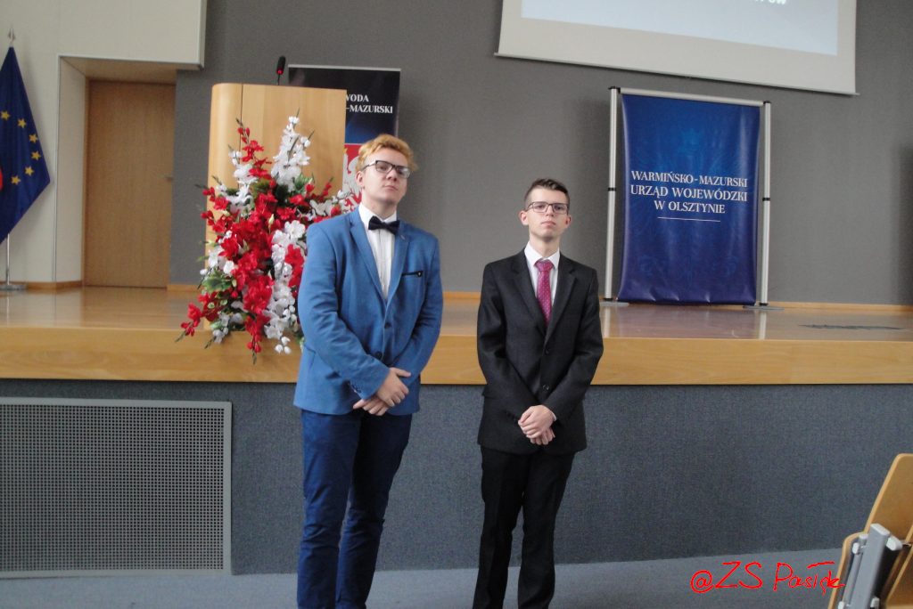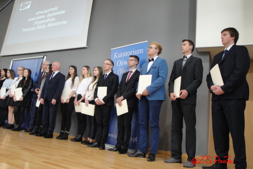 W środę 15 listopada 2017 roku w Urzędzie Wojewódzkim w Olsztynie odbyła się uroczystość wręczenia dyplomów stypendystom Prezesa Rady Ministrów. W uroczystości wzięli udział Wicewojewoda Warmińsko-Mazurski Sławomir Sadowski i Warmińsko-Mazurski Kurator Oświaty Krzysztof Nowacki. Miło nam poinformować, że wśród nagrodzonych z naszego województwa znaleźli się uczniowie Zespołu Szkół w Pasłęku Maciej Miszczyszyn z klasy II A I Liceum Ogólnokształcącego o nachyleniu politechnicznym i Bartłomiej Korzeniewski z klasy III Technikum nr 1.