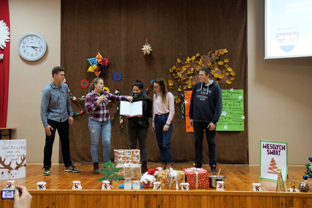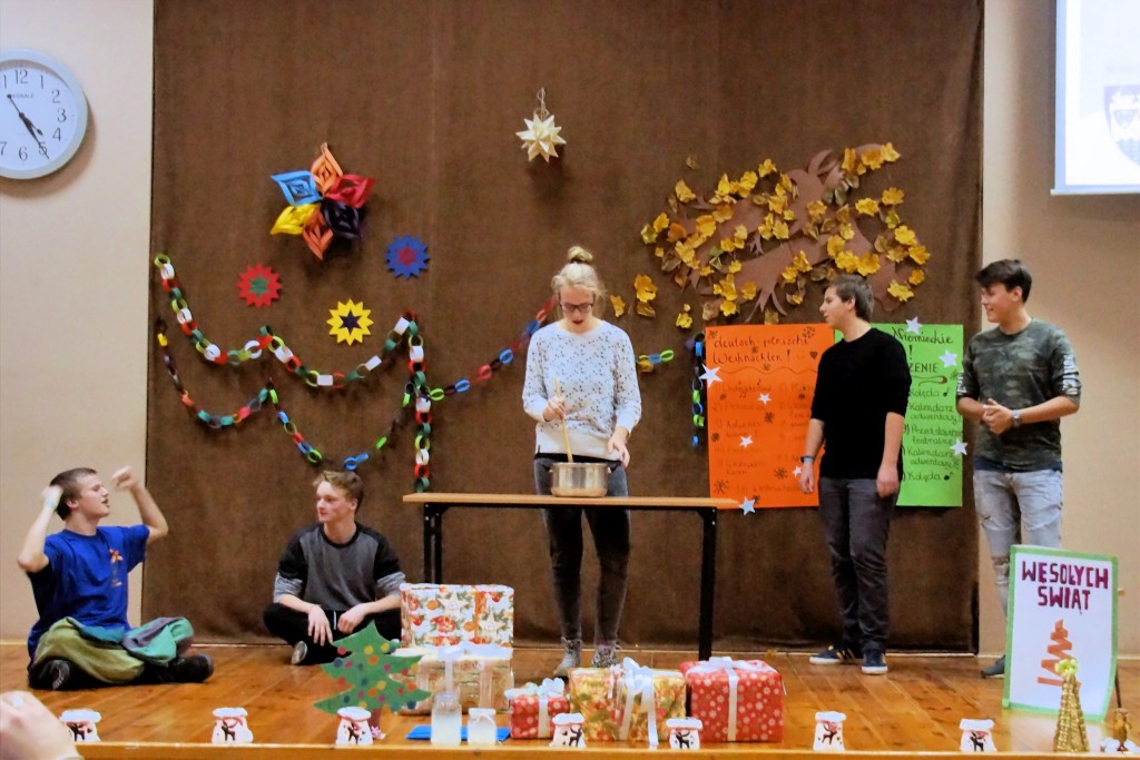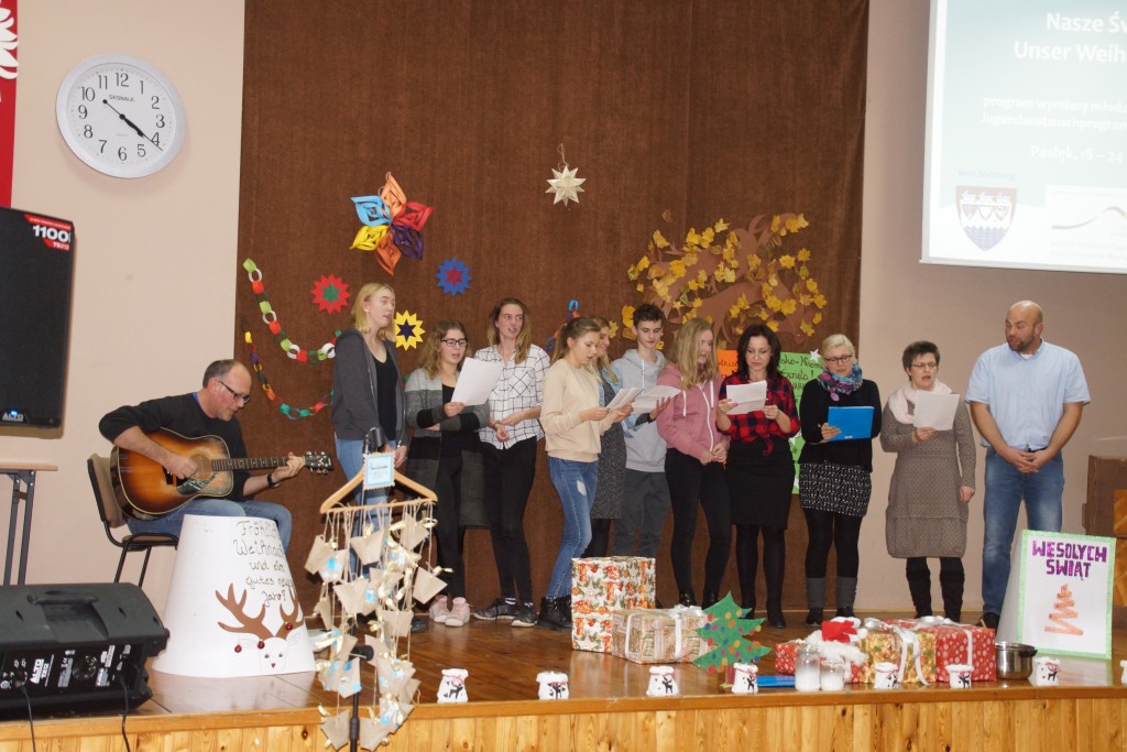 Podczas warsztatowej części projektu uczniowie porównywali tradycje i obrzędy związane z obchodami Świąt Bożego Narodzenia w Polsce i w Niemczech. Praca odbywała się w kilku mniejszych grupach tematycznych. Po kilku dniach pracy każda z grup zaprezentowała swoje osiągnięcia podczas konferencji podsumowującej 23 listopada w auli Zespołu Szkół w Pasłęku, na której wśród specjalnych gości znalazł się wicestarosta Zbigniew Lichuszewski. Świąteczna atmosfera udzieliła się wszystkim obecnym. Spotkanie zakończyło się wspólnym śpiewaniem polskich i niemieckich kolęd przez wszystkich uczestników.