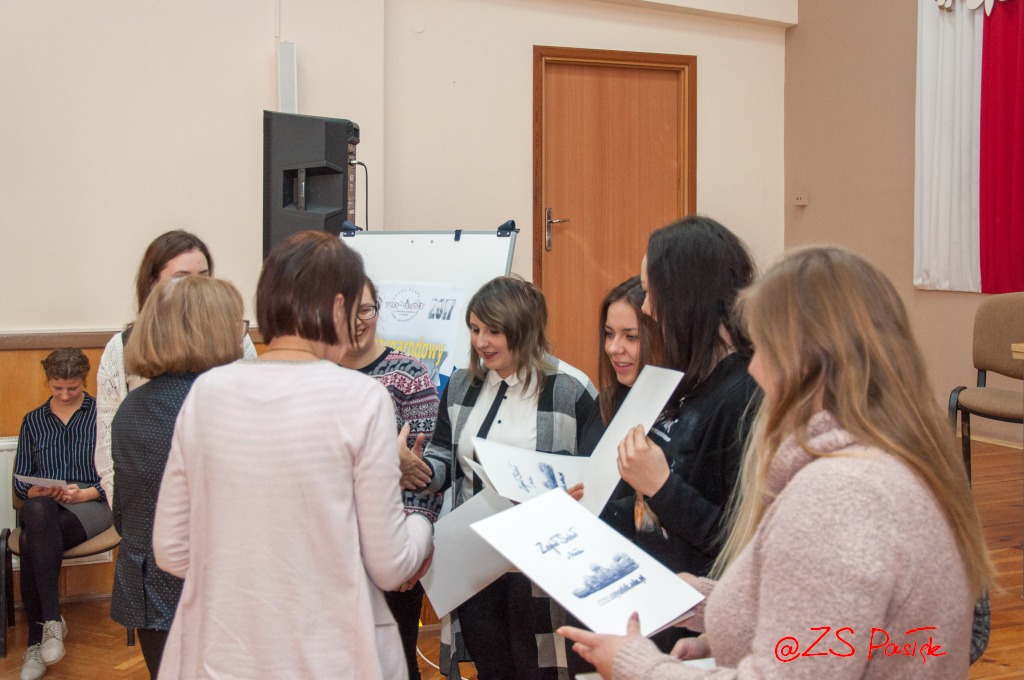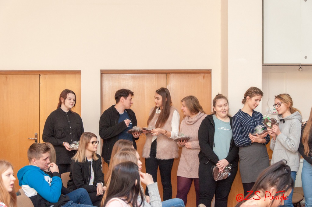 Ostatnim, ale nie mniej ważnym momentem było wręczenie wolontariuszom certyfikatów ze zrealizowanego w ubiegłym roku projektu. Otrzymali też czekoladowe serca, które symbolizowały wdzięczność ze strony Dyrekcji oraz opiekunów, którym wcześniej dyrektor Elżbieta Wasiuk przekazała szczere oraz serdeczne słowa uznania. Na koniec spotkania koordynator SKW Beata Łuczyńska-Pyra złożyła podziękowania wszystkim wolontariuszom i opiekunom: Dorocie Ćwik, Emilii Kołeckiej-Duda i Marcie Puławskiej za wyjątkową współpracę.