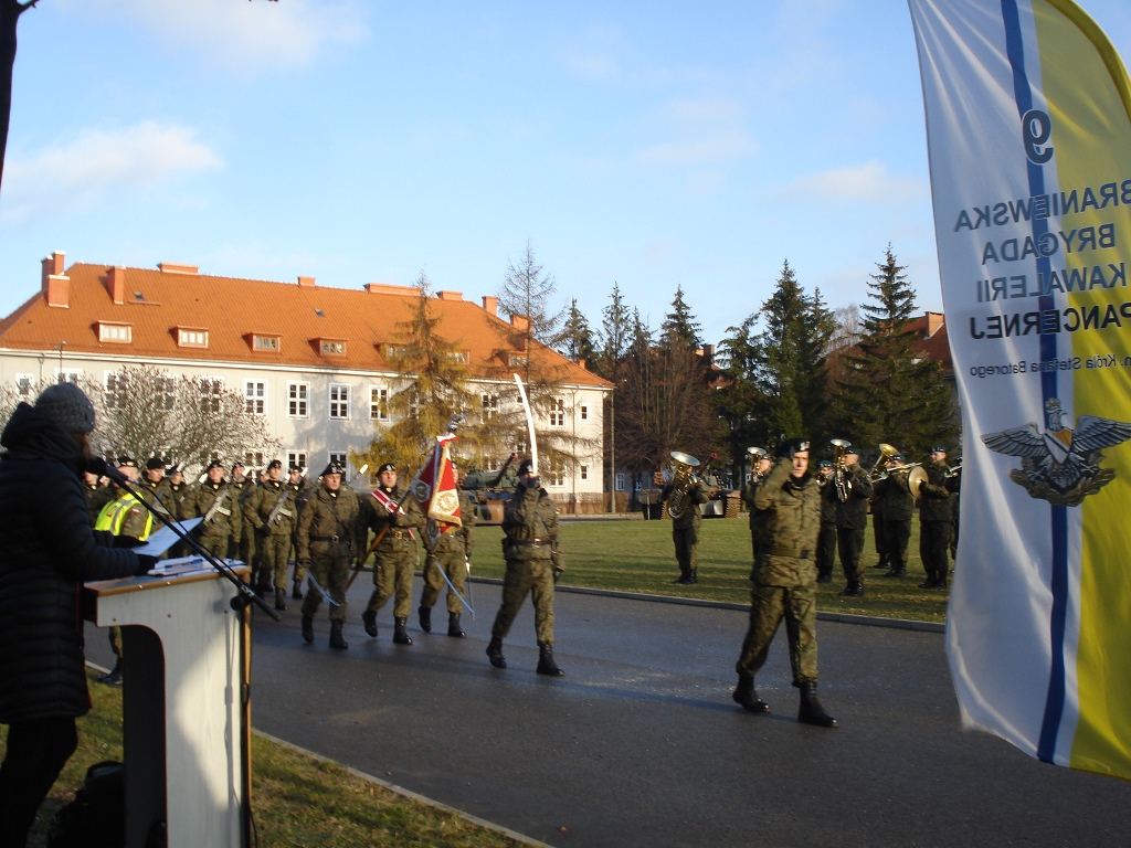 Na zaproszenie Dowódcy 9. Braniewskiej Brygady Kawalerii Pancernej płk. Jacka Ostrowskiego w powitaniu żołnierzy uczestniczył Dyrektor ZSEiT Marian Matuszczak. Podczas spotkania Dowódca Brygady dziękował za wsparcie żołnierzy pierwszej zmiany Polskiego Kontyngentu Wojskowego na Łotwie - za udział kadetów pożegnaniu żołnierzy. Dyrektor Matuszczak również podziękował za dotychczasową współpracę i wręczył okolicznościowy upominek.