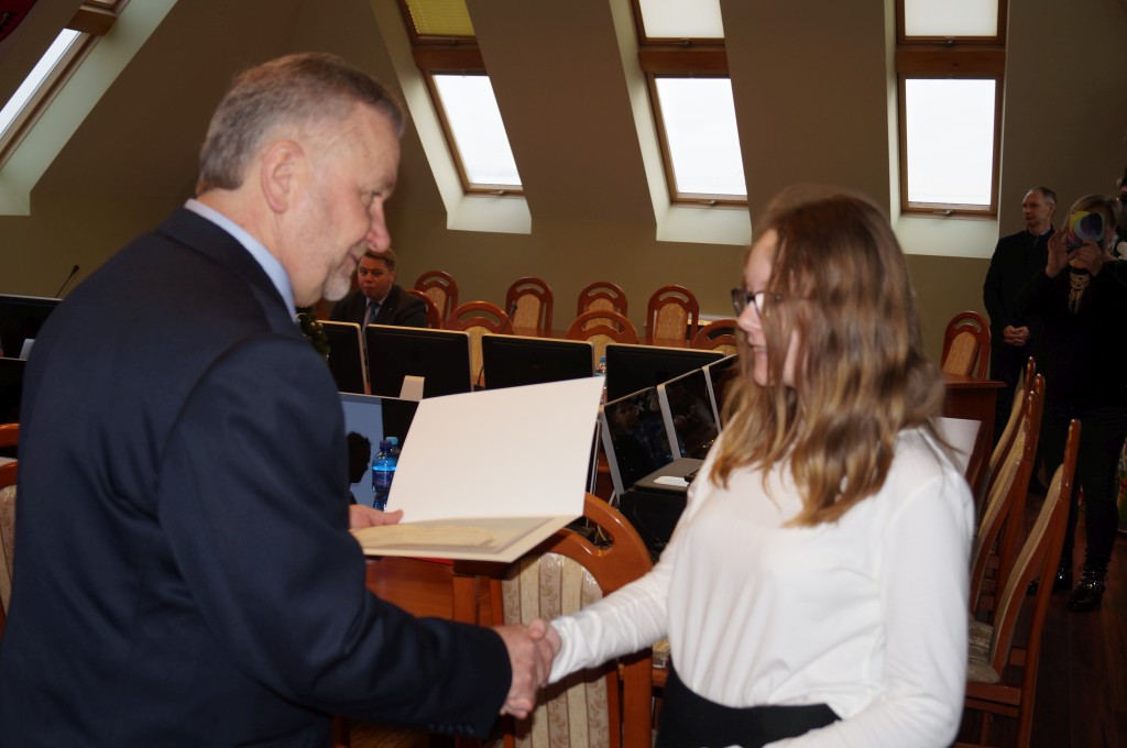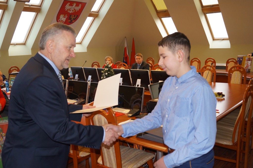 Podczas posiedzenia Zarządu Powiatu w Elblągu 19 grudnia zostały wręczone nagrody laureatom I edycji Powiatowego Konkursu Plastycznego 2017 dla dzieci i młodzieży pod hasłem „Ciche zatruwanie to czadu działanie”. Dyplomy i nagrody rzeczowe dzieci otrzymały z rąk starosty Macieja Romanowskiego oraz członka zarządu Joanny Naspińskiej.