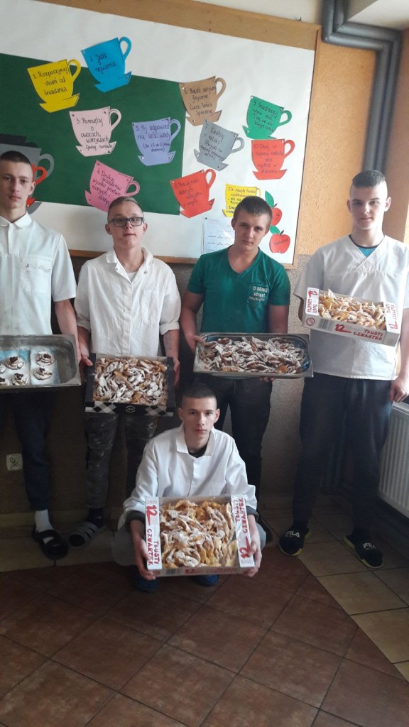 W Młodzieżowym Ośrodku Wychowawczym w Kamionku Wielkim tłusty czwartek został należycie uczczony, a pyszne faworki i gwiazdy karnawałowe robili chłopcy z klasy pierwszej branżowej o profilu kucharz.