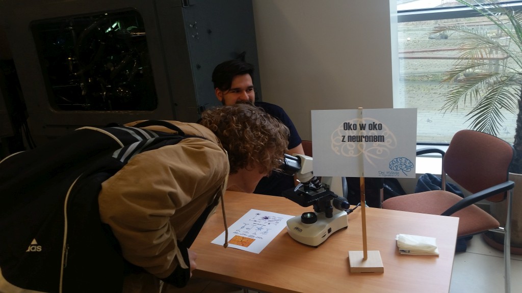 Czas pomiędzy kolejnymi wykładami uczniowie spędzali przy stoiskach, gdzie mogli zbadać na sobie zasady działania mózgu i narządów zmysłów. Trzeba przyznać, że proste doświadczenia u wielu wywołały duże emocje oraz zaskoczenie, kiedy np. okazywało się, że wiele odczuć to po porostu złudzenia.