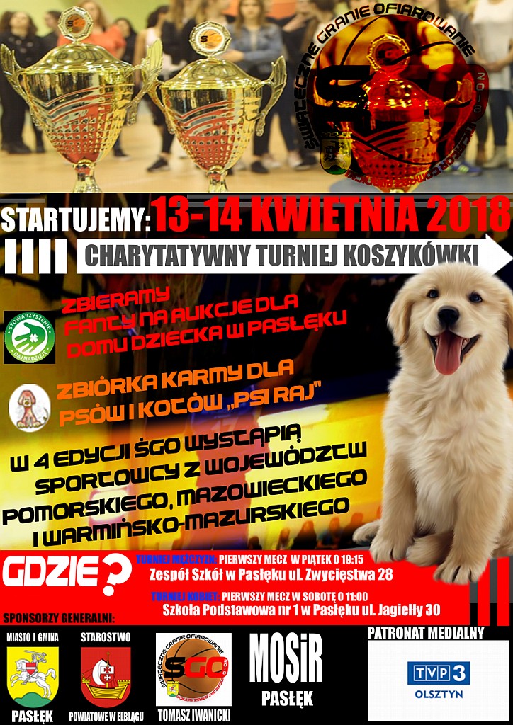 W Pasłęku sportowcy zagrają dla Domu Dziecka oraz schroniska dla zwierząt PSI RAJ. Organizatorzy poszukują fantów na aukcję dla Domu Dziecka w Pasłęku. I choć Turnieje zakończą się 14 kwietnia, to fanty będą zbierane do końca lipca.