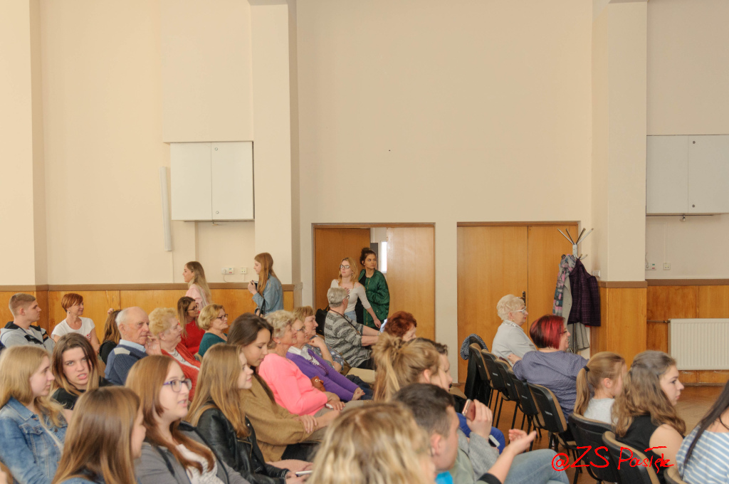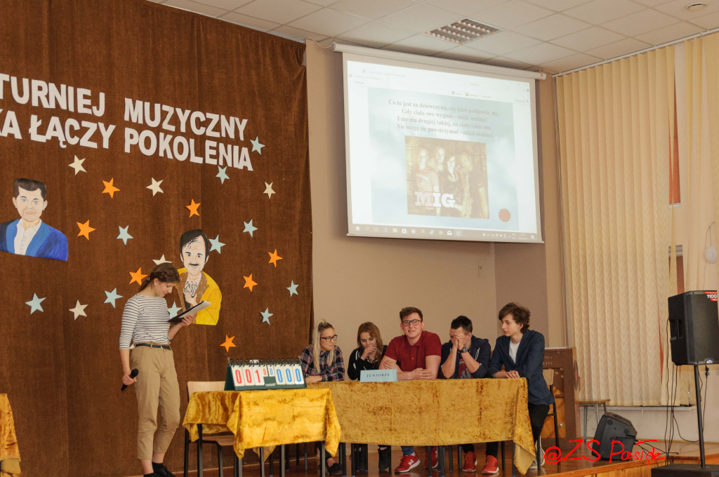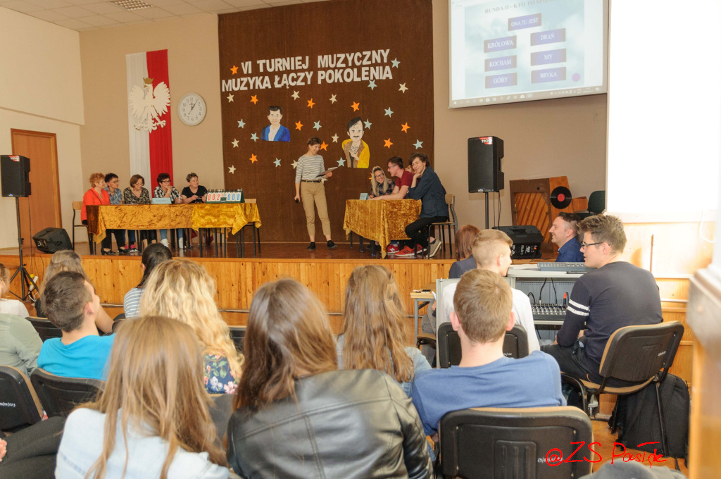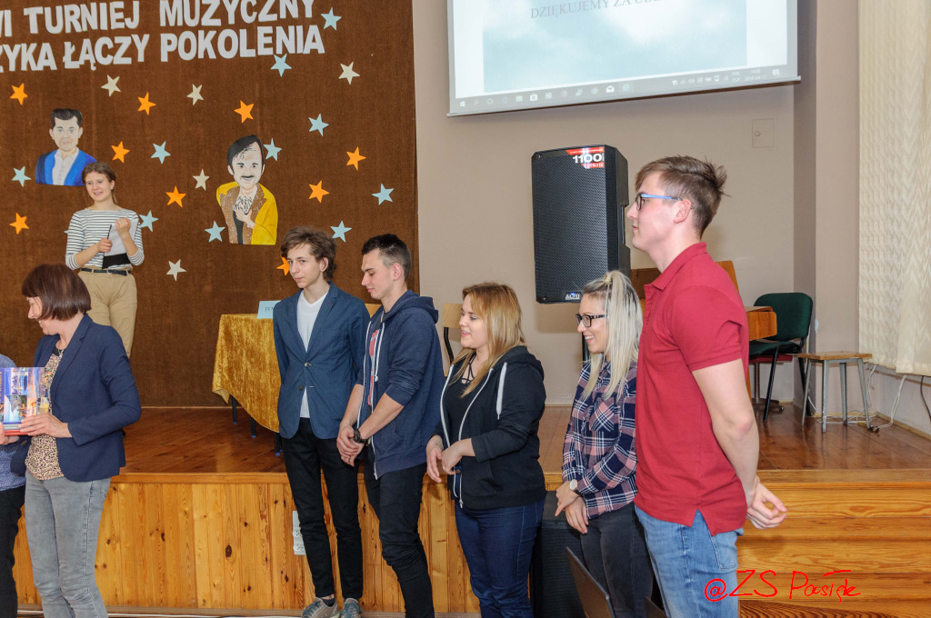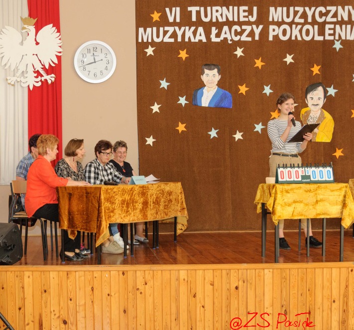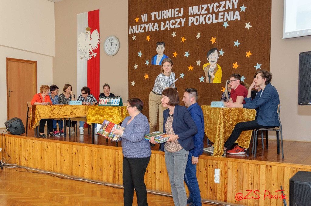 We wtorek 17 kwietnia w auli Zespołu Szkół w Pasłęku odbyła się szósta edycja Turnieju Muzycznego „Muzyka łączy pokolenia”, którego organizatorem jest Towarzystwo Przyjaciół LO w Pasłęku. W tym roku dwie drużyny: seniorów z Pasłęckiego Uniwersytetu Trzeciego Wieku (Anna Majecka, Teresa Nasiadko, Ewa Głowacka, Jadwiga Nadurska i Helena Turska) i juniorów z Zespołu Szkół w Pasłęku (Natalia Sawraza, Aleksandra Lipińska, Łukasz Wróbel, Michał Tyszecki i Maciej Woźnowski) rywalizowały w pięciu kategoriach muzycznych, dotyczących muzyki disco polo. Uczestnicy musieli m.in. rozpoznać utwór po melodii, podać wykonawcę piosenki, dośpiewać przerwany fragment znanych szlagierów czy też zaśpiewać wybraną piosenkę. Dodatkowo obie drużyny mogły powiększyć pulę swoich punktów odpowiadając na pytania organizatorów. W tym roku po raz pierwszy od początku istnienia Turnieju szczęście uśmiechnęło się do juniorów, którzy wygrali z seniorami 27 do 18. Imprezie towarzyszyła świetna zabawa i skoczne rytmy disco polo. Nagrody książkowe ufundowane przez Radę Rodziców przy Zespole Szkół w Pasłęku wręczyła wicedyrektor Katarzyna Panimasz, a podziękowania na ręce organizatorów złożyła prezes PUTW Helena Mendelewska. W przyszłym roku odbędzie się siódma edycja, której hasłem przewodnim będzie polska piosenka lat 50. i 60.