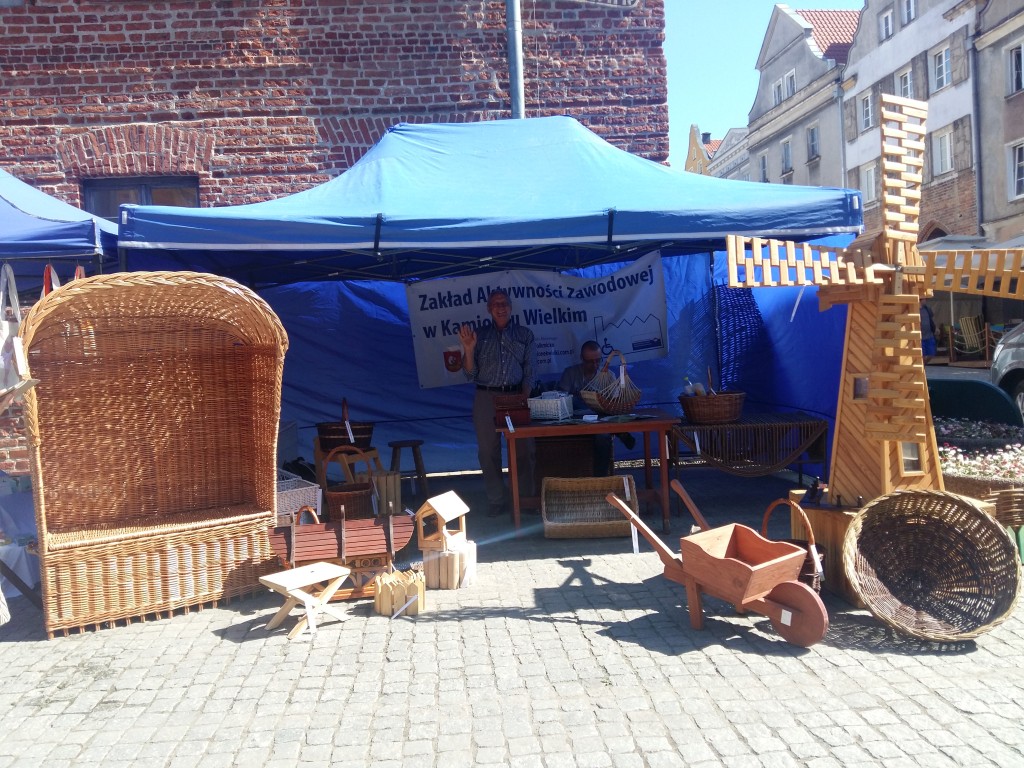 Pracownicy ZAZ w Kamionku Wielkim prezentowali swoje wyroby z wikliny i stolarni, tapicerni oraz foldery reklamowe prezentujące usługi pralnicze.