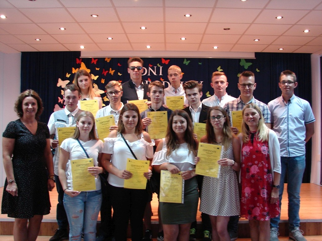 Kluczowym punktem spotkania było uroczyste wręczenie certyfikatów uczestnikom projektu. Do podsumowania działań wykorzystano prezentację multimedialną, na której zebrani mogli zobaczyć, jak przebiegały praktyki, praca w zakładach, a także wycieczka do San Marino, które stażyści zwiedzili w czasie wolnym od praktyk. Podczas spotkania uczennice serwowały lody włoskie, a w szczególności ukochane przez młodzież te, o samku „fragola” (tłum. truskawka).
