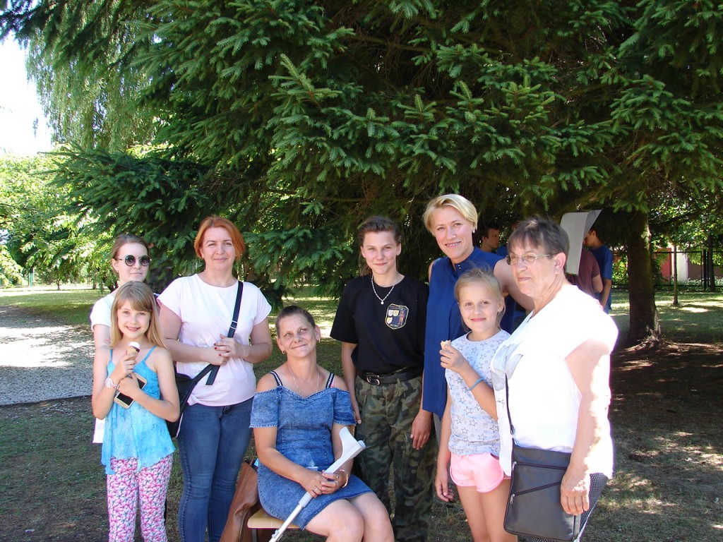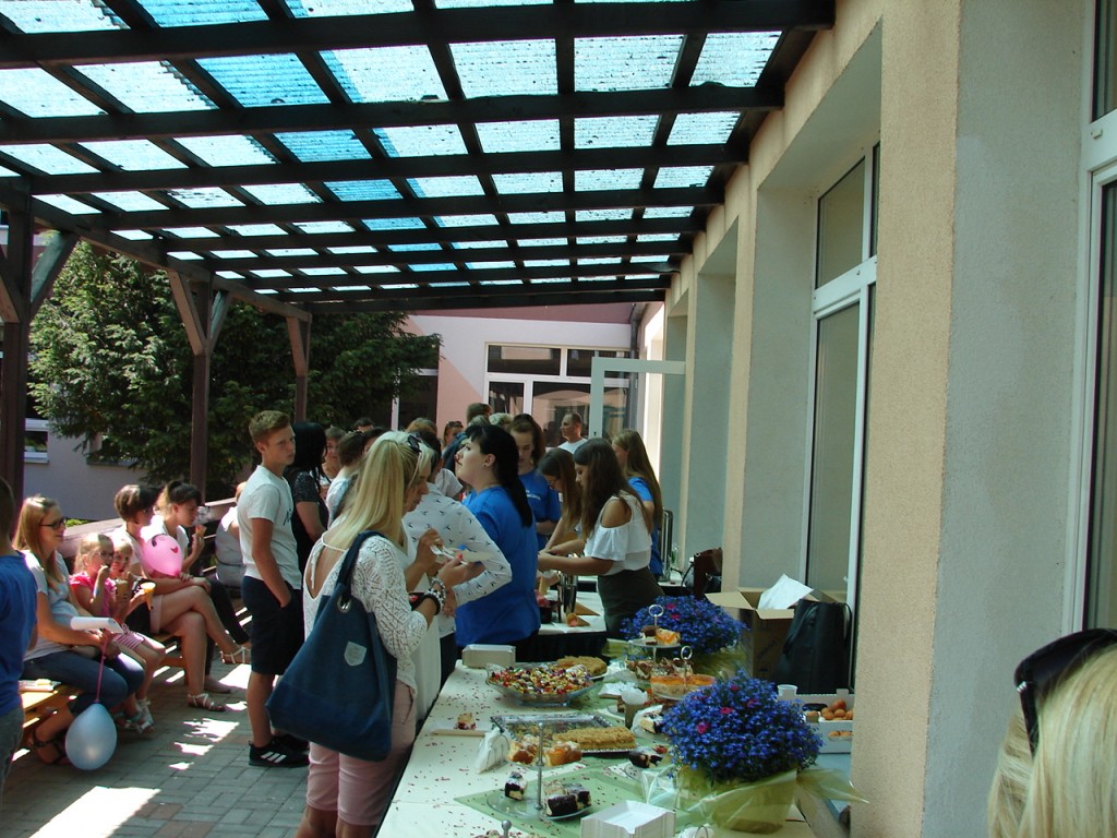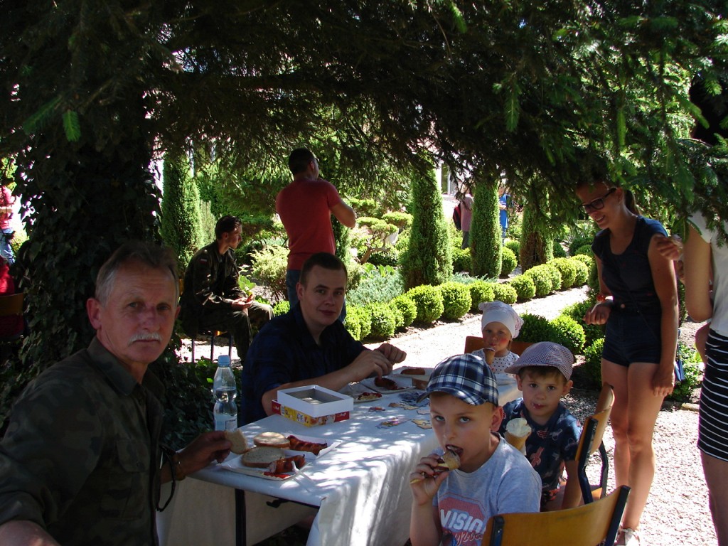 Wspólny poczęstunek w szkolnym ogrodzie zakończył spotkanie, a upamiętniły je pamiątkowe zdjęcia.