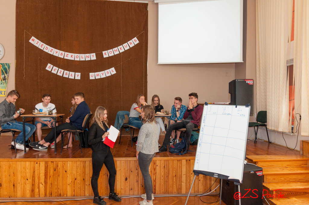 Konkurs składał się z czterech etapów: rozwiązywanie pytań testowych, krzyżówka, ilustracje oraz rebusy. Poziom był bardzo wysoki, wszyscy uczestnicy dzielnie walczyli o tytuł „Ścisłego umysłu”. Starsi kibicujący koledzy i koleżanki byli nie tylko obserwatorami rozgrywek, ale mogli również czynnie uczestniczyć w rozwiązywaniu zagadnień otrzymując drobne nagrody.