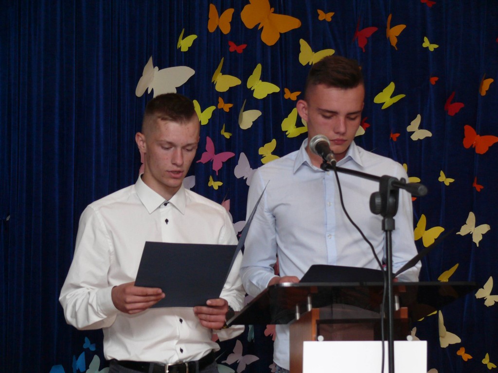 Nagrodzono uczniów, którzy zdobyli świadectwa z wyróżnieniem, wykazali się bardzo dobrą frekwencją, a także tych, którzy w szczególny sposób angażowali się w życie szkoły. Wśród nagrodzonych szczególnie wyróżniono – zdjęciem na tle sztandaru szkoły - Filipa Woźniaka, ucznia klasy III ZSZ kończącego szkołę, który otrzymał świadectwo z biało-czerwonym paskiem.