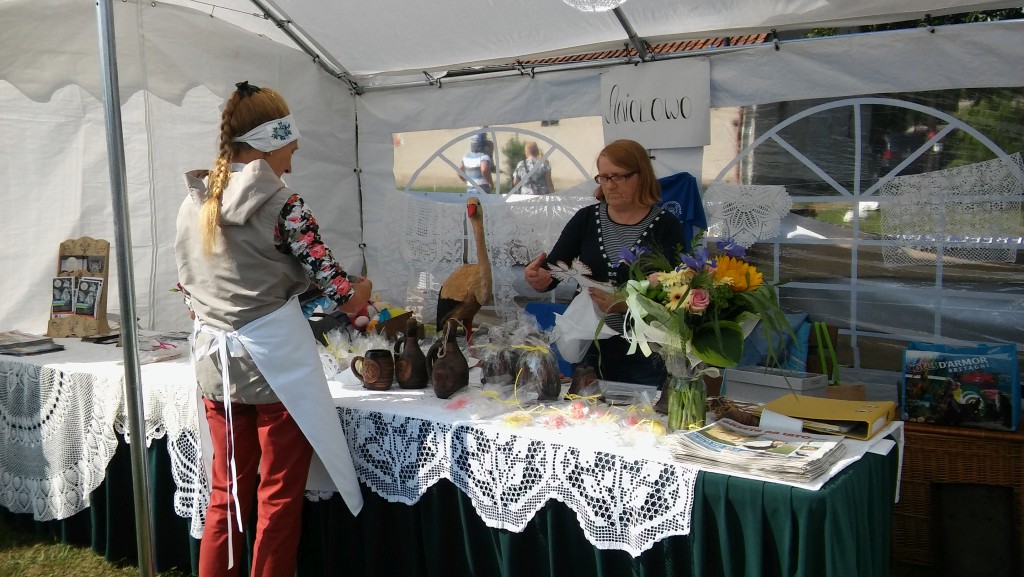 Tylko organizatorzy zerkali w niebo z niepokojem, które coraz bardziej zasłaniało się ciężkimi chmurami. W sobotę od rana padał coraz silniejszy deszcz. Nie przeszkodził jednak na tyle, by w miejscu spotkań plenerowych w Aniołowie przerwać przygotowania. Mieszkańcy Aniołowa, wspierani osobami z Pomorskiej Wsi, Marianki, Zalesia, Weklic przygotowywali grochówkę i anielskie ruchańce. Urządzali stoiska serwowania lokalnych specjałów i miejsce dla zaproszonych gości. Zawieszono flagi Francji, Ukrainy i Polski oraz Gminy Pasłęk i Aniołowa. Na placu zaczęli pojawiać się pierwsi wystawcy i przedstawiciele aktywnych miejscowości z gminy Pasłęk, powiatu elbląskiego, Warmii i Mazur, z kilku regionów Polski oraz goście zza granicy.