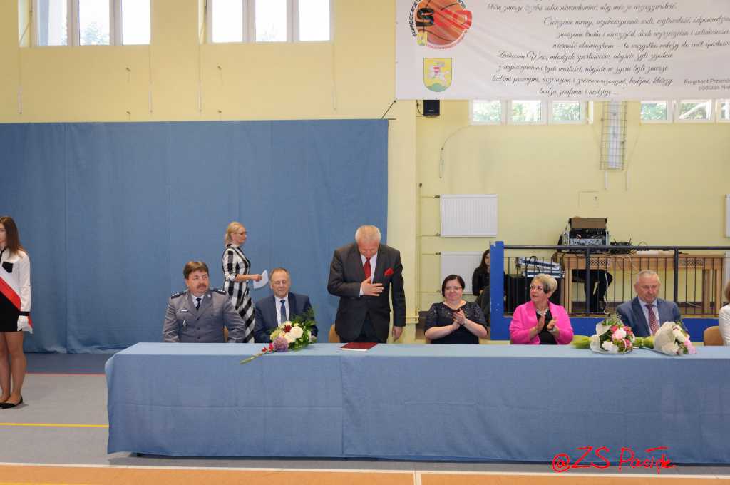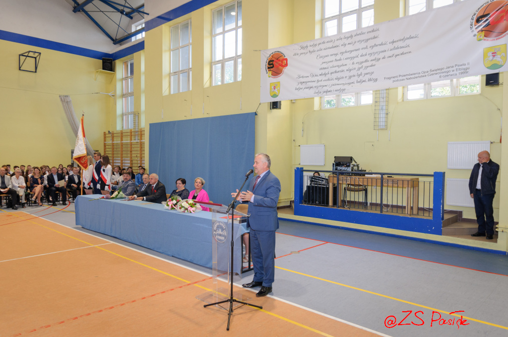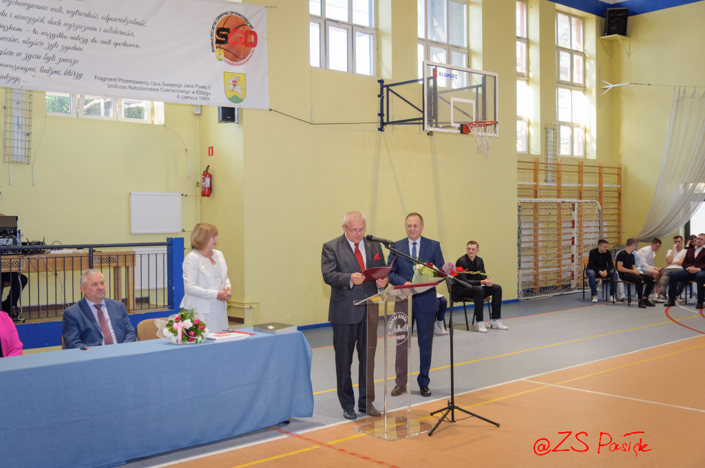 W inauguracji roku szkolnego wzięli udział Starosta Elbląski Maciej Romanowski, Członek Zarządu Powiatu Joanna Naspińska, Burmistrz Pasłęka Wiesław Śniecikowski, Przewodniczący Rady Miejskiej w Pasłęku Edward Skalij oraz Zastępca Komendanta Komisariatu Policji w Pasłęku Robert Papierowski.