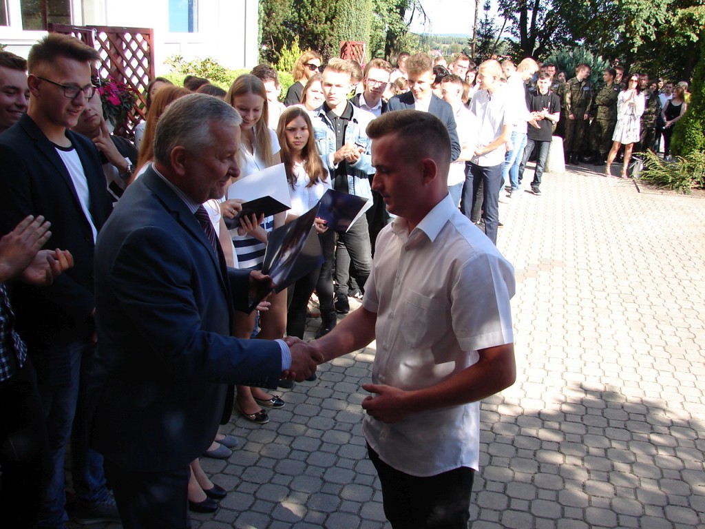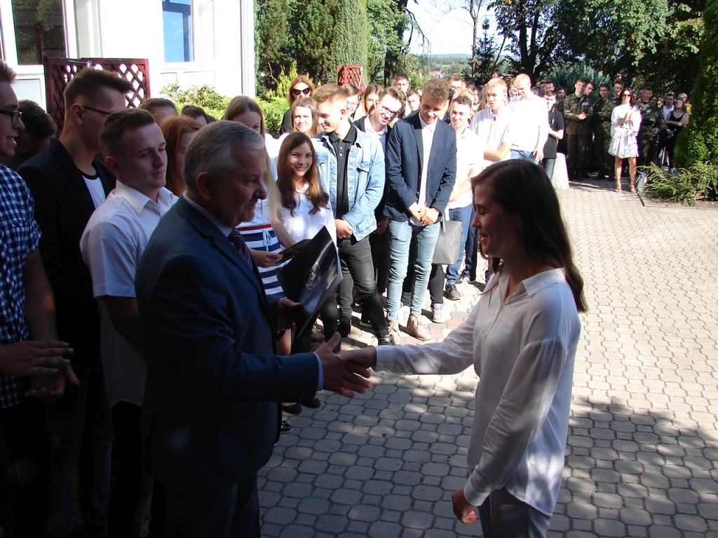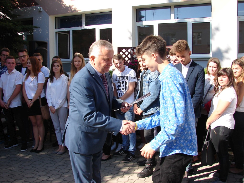Podczas uroczystości głos zabrali również starosta i burmistrz, gratulując sukcesów szkolnych i życząc owocnej, pomyślnej pracy w nowym roku szkolnym.