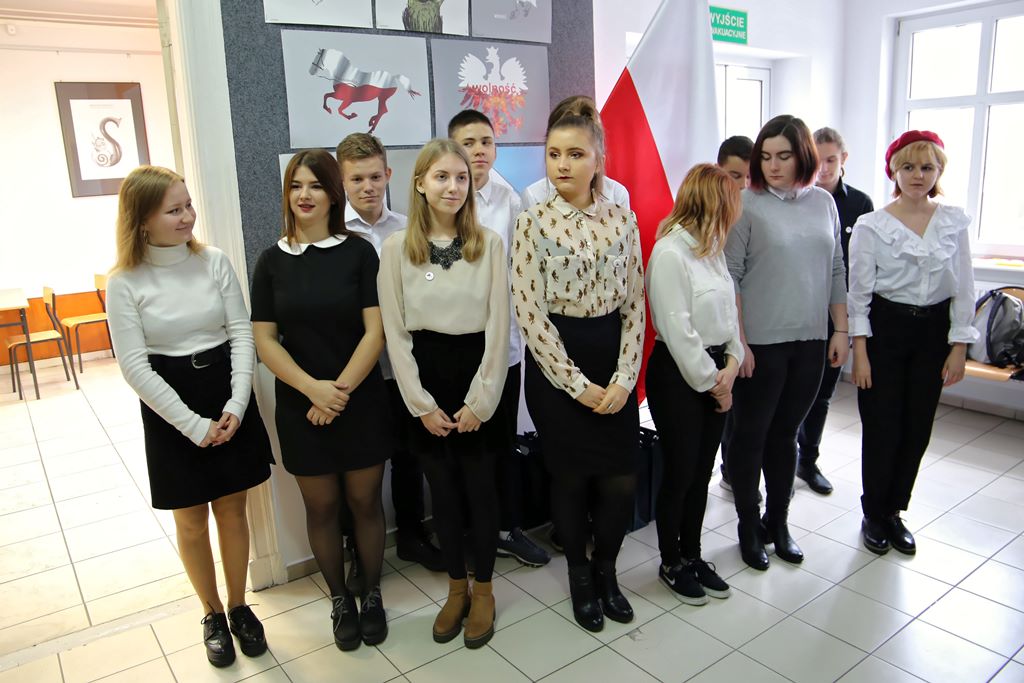 O 11.11 nadszedł czas na oficjalną część uroczystości. Odśpiewaliśmy cały hymn Polski i złożyliśmy hołd oraz podziękowania dla tych, którzy przed stu laty wywalczyli dla nas Polskę. Ten dzień uświadomił wielu z nas, że to, iż możemy uczyć się sztuki w szerokim tego słowa zakresie w ogromnym stopniu zawdzięczamy właśnie oddaniu naszych rodaków. Tak jak wyjątkowa była ta rocznica, tak samo wyjątkowe były nasze obchody. Każdy uczeń z dumą nosił zaprojektowane przez jedną z naszych uczennic przypinkę symbolicznie obrazującą niepodległość.