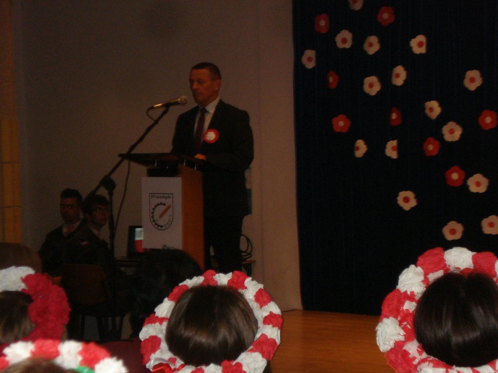 Potem przeszliśmy wraz z licznie zebranymi pasłęczanami na plac św. Wojciecha. Po zaśpiewaniu Hymnu Państwowego (grała orkiestra strażacka z Zielonki Pasłęckiej) zatańczono poloneza, w którym wzięła udział większość zgromadzonych uczestników. Dyrekcja szkoły wiodła prym w jego wykonaniu.