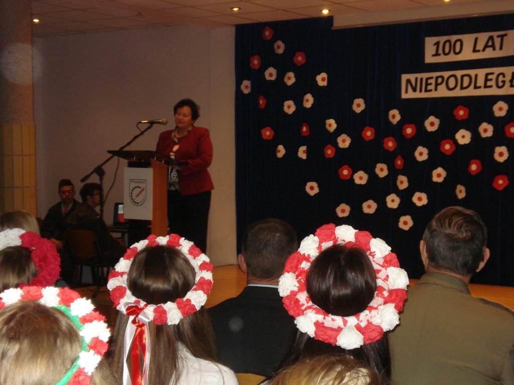 Kolejnym punktem uroczystości było podsumowanie przez Małgorzatę Purzycką projektu Szkoła Młodych Patriotów. Kalendarium Niepodległościowe przedstawili uczniowie klasy I liceum, którzy zabrali zgromadzonych w podróż po losach Ojczyzny od utraty niepodległości, aż po jej odzyskanie.