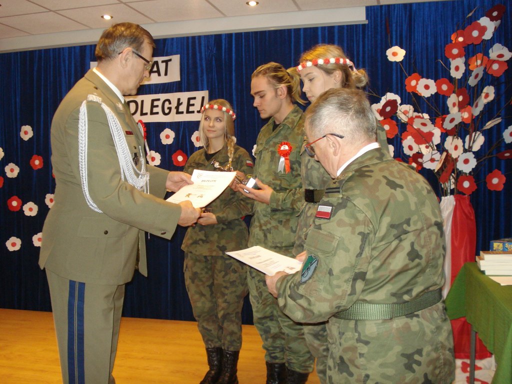 Jak co roku uroczystość stworzyła okazję do podsumowania pracy i uhonorowania najlepszych uczniów trzeciej klasy mundurowej. Najlepszym uczniom – kadetom statuetki okolicznościowe wręczył gen. Ryszard Jabłoński - przyjaciel szkoły. Wśród wyróżnionych kadetek znalazły się Aleksandra Dzika i Martyna Sadowska, a najlepsi kadeci to - Michał Ochnik i Kajetan Ciekliński. Generał Jabłoński wręczył także dyplomy za najlepsze wyniki w strzelaniu uzyskane na mistrzostwach III klasy wojskowej podczas pobytu na obozie szkoleniowym w 9BBKPanc w Braniewie. Podczas uroczystości wręczone zostały także nagrody zdobyte w ramach Międzyklasowego Turnieju Gier Planszowych o tematyce historycznej.