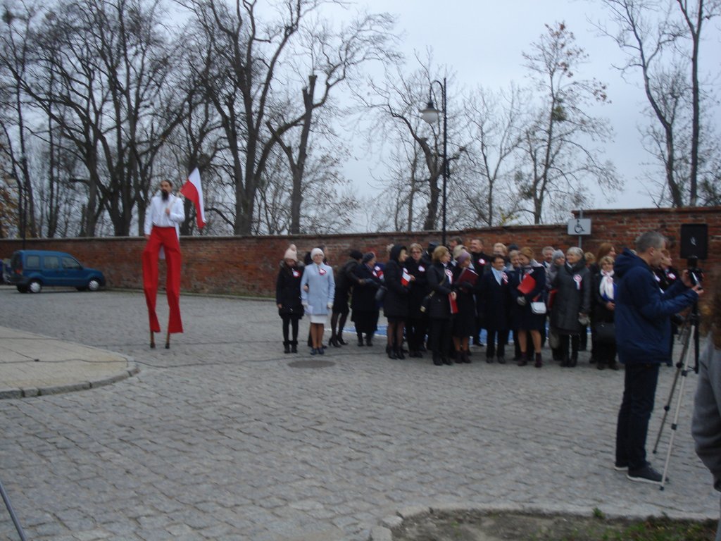 Następnie śpiewaliśmy nasze pieśni patriotyczne z różnych okresów naszej historii. Nie zabrakło „Roty” oraz „Marszu I Brygady”. Atmosfera była wspaniała. Taka rocznica zdarza się raz na wieczność i nigdy nikt z uczestników jej nie zapomni. Organizatorzy zadbali także o nasze podniebienia. Była myśliwska, gorąca grochówka i słodkie rogale „marcińskie”.