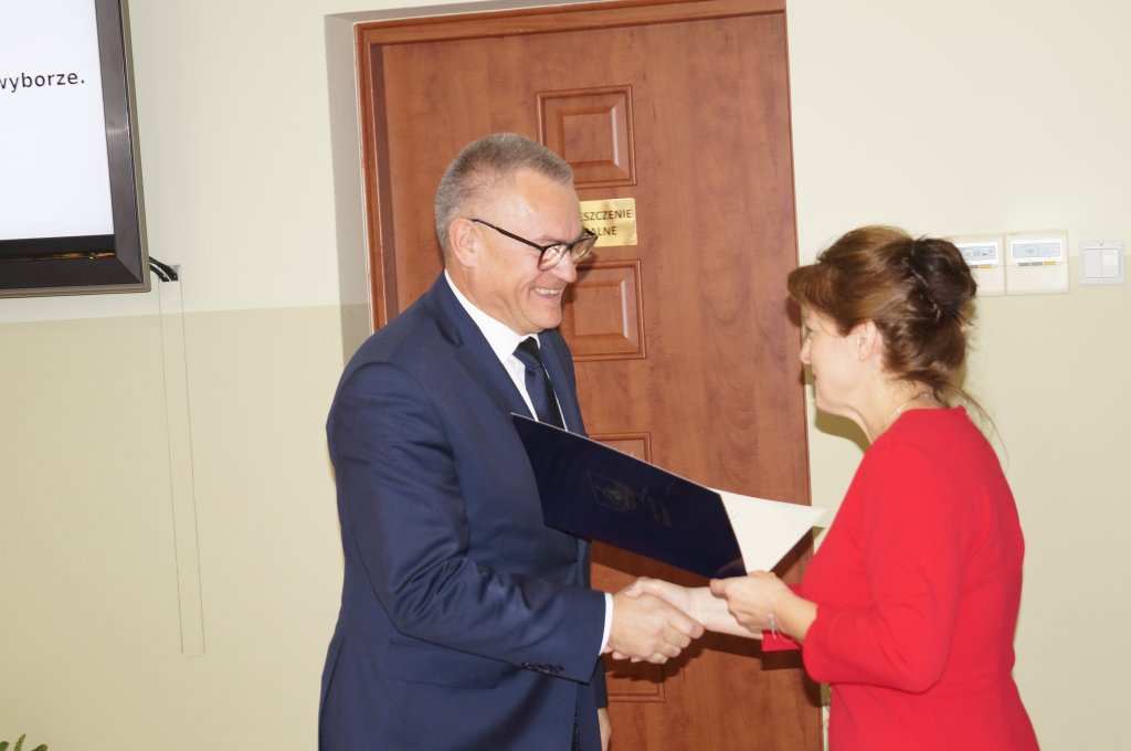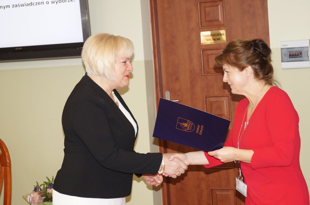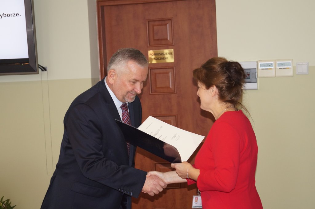 Miłym akcentem podczas sesji było złożenie gratulacji nowo wybranej przewodniczącej Rady Genowefie Kwoczek oraz staroście Maciejowi Romanowskiemu przez prezydenta Elbląga Witolda Wróblewskiego.