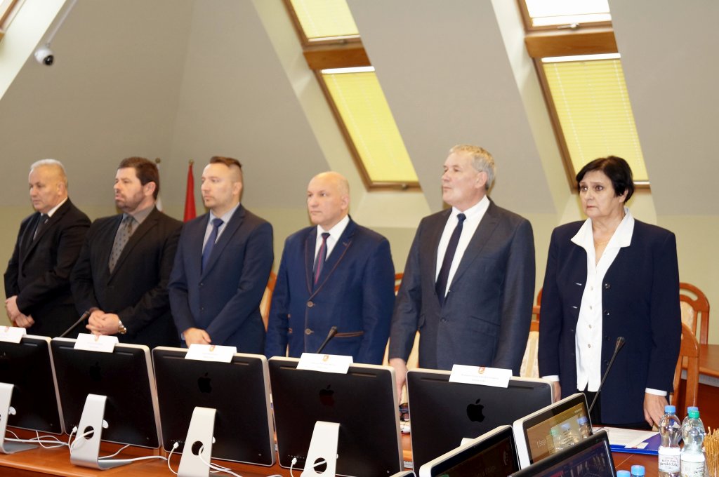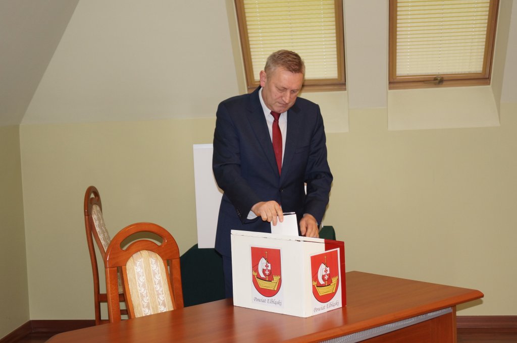 Posiedzenie, które otworzył radny senior Ryszard Wroński, rozpoczęło się od odebrania zaświadczeń o wyborze i złożenia ślubowania przez radnych. Następnie, w serii głosowań tajnych, dokonano wyboru prezydium Rady Powiatu i Zarządu Powiatu.