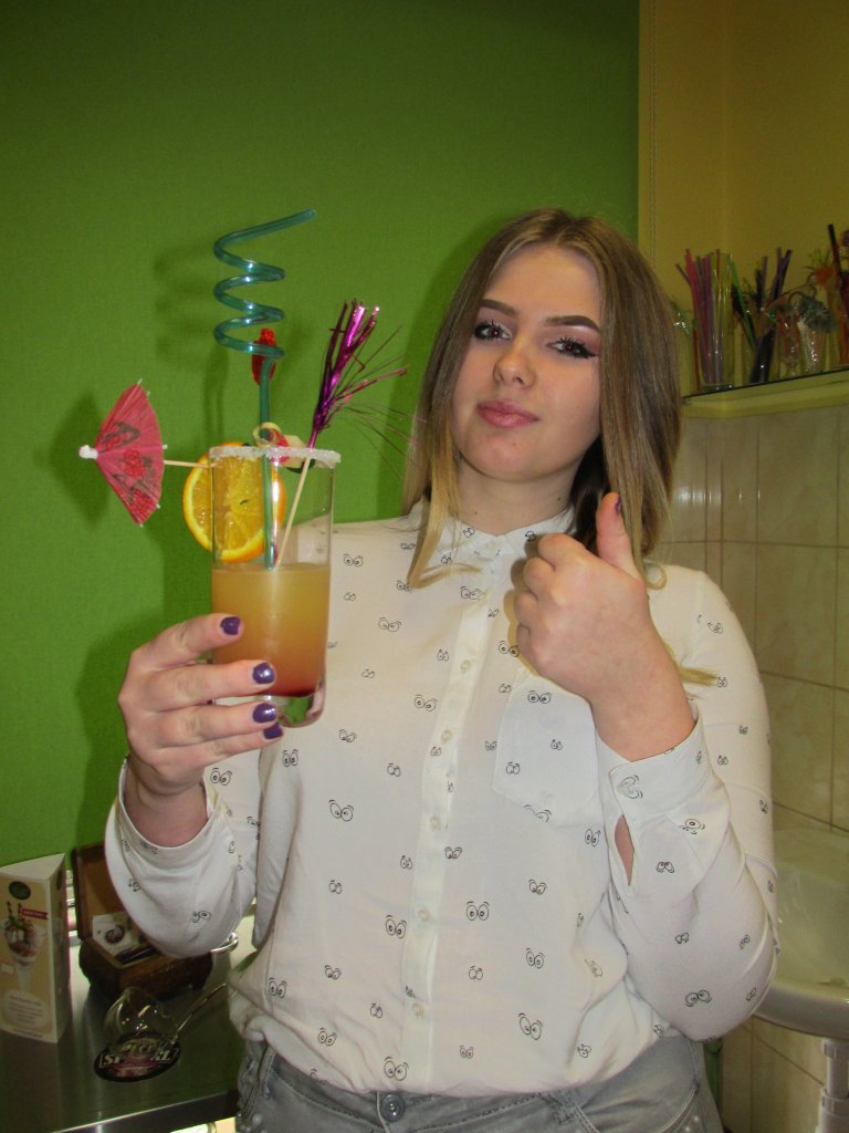Warsztaty koktajlowe miały nauczyć nas podstaw mieszania i miksowania koktajli bezalkoholowych opartych na naturalnych sokach owocowych i warzywnych. Jeszcze raz udowodniliśmy, że takie zajęcia to rewelacyjny pomysł na wspólną integrację. Przeniesienie w świat barmański pozwala doskonale poznać predyspozycje do przyszłego zawodu. Umiejętność koncentracji i skupiania uwagi gości na własnej osobie pozwala ćwiczyć tak ważne dla hotelarza poczucie bycia docenianym za swoją pracę.