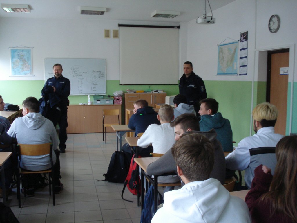 21 listopada uczniowie klas pierwszych technikalnych oraz trzecich zawodowych zapoznali się z problematyką wykroczeń i czynów karalnych. Panowie aspiranci Piotr Pawlikowski i Karol Paluch pełniący także funkcje dzielnicowych, szczegółowo wyjaśnili wszystkie wątpliwości i problemy.