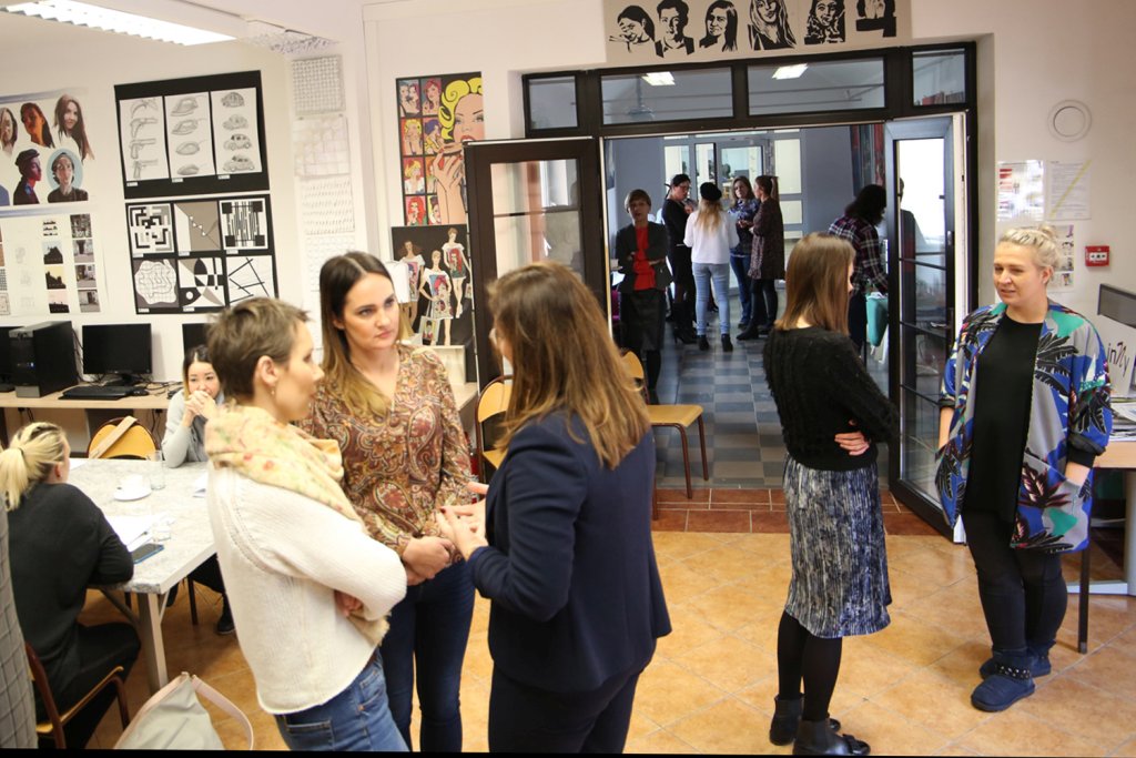 Nauczyciele szkół plastycznych zwiedzili Liceum Plastyczne w Gronowie Górnym i poznali specyfikę szkolnych pracowni artystycznych (m. in. fotografii, podstaw projektowania, technik druku artystycznego, rzeźby, malarstwa).