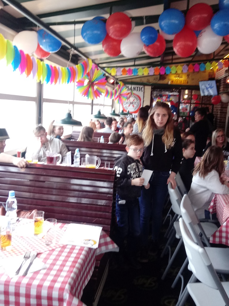 Podczas amerykańskiego obiadu (były pyszne hamburgery, frytki i desery) dzieciaki, miały okazję spotkać największe popularne, znane i lubiane osoby ze świata kultury, filmu, sportu i muzyki. Czuliśmy, że byliśmy honorowymi gości, to o nas dbano. Gwiazdy kelnerowały przy stolikach, pytały się skąd jesteśmy, co u nas słychać. Robiliśmy sobie z nimi zdjęcia, otrzymaliśmy autografy. Po uroczystym posiłku nastąpił szereg wspaniałych zabaw, konkursów, występów muzycznych i spotkań. Wśród gwiazd, a było ich wielu, znaleźli się m.in. Małgorzata Socha, Katarzyna Zielińska, Natalia Siwiec, Beata Tadla, Roksana Węgiel, Mandaryna z zespołem tanecznym, Grzegorz Hyży z małżonką, Paweł Stasiak, Karolina Szostak, Mariusz Czerkawski, Ania Korcz, Mateusz Gessler, Kasia Dąbrowska, Marta Kuligowska, Joanna Racewicz, Anna Samusionek, Artur Szpilka, Natalia Siwiec, znani yutuberzy, tiktokerzy, Gosia Andrzejewicz, Państwo Amroziak, Magda Zawadzka, Dawid Woliński, Marysia Niklińska, Maria Sadowska i wielu innych. Nie sposób wszystkich wymienić bo było ich podobno 120. Całość imprezy prowadziła Bogna Sworowska.