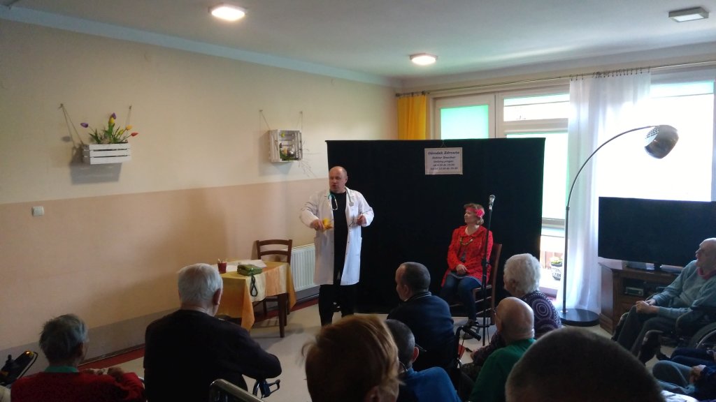 3 kwietnia mieszkańcy Domu Pomocy Społecznej w Tolkmicku gościli aktorów z Agencji Artystycznej GALANA w Krakowie ze sztuką pt. „Zdrówko”.