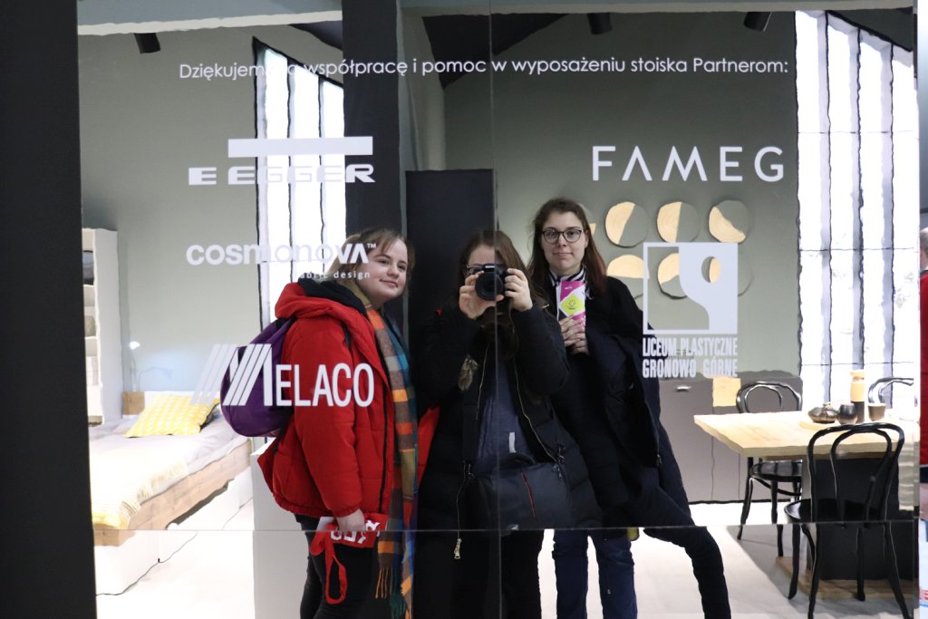 „Poprzez współpracę z firmą Meble Wójcik nasze prace i szkice zostały wkomponowane w pomieszczenia ich pawilonu. – relacjonuje Dominika Sambor, uczennica Liceum Plastycznego - Zobaczyliśmy, że sztuka nie tylko wzbogaca przestrzeń, ale również podkreśla estetykę i design mebli. Następnie przeszliśmy do oglądania wystaw w kolejnych pawilonach. Patrząc na ekspozycje zwracaliśmy szczególnie uwagę na loga firm oraz stylistykę wystaw, aby zaczerpnąć możliwie jak najwięcej inspiracji. Targi mebli niezwykle nam się spodobały, ponieważ zobaczyliśmy wiele interesujących i nowoczesnych rozwiązań, które można wykorzystać w pomieszczeniach.”