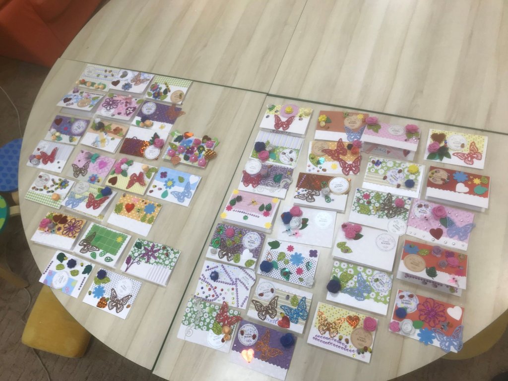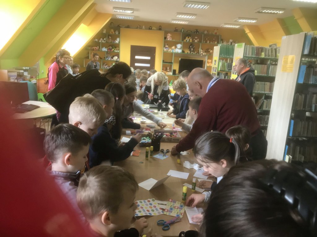 Dużym zainteresowaniem cieszyły się warsztaty plastyczne dla dzieci pt. „Kartkowy zawrót głowy”, które dnia 15.05.2019 r. zorganizowali w Bibliotece Publicznej w Pasłęku terapeuci wraz z uczestnikami Środowiskowego Domu Samopomocy w Przezmarku. Tematem przewodnim warsztatów był Dzień Matki, który obchodzimy 26 maja. Dzieci wspólnie z uczestnikami wykonywały kartki okolicznościowe, które wręczą swoim mamom w dniu ich święta.