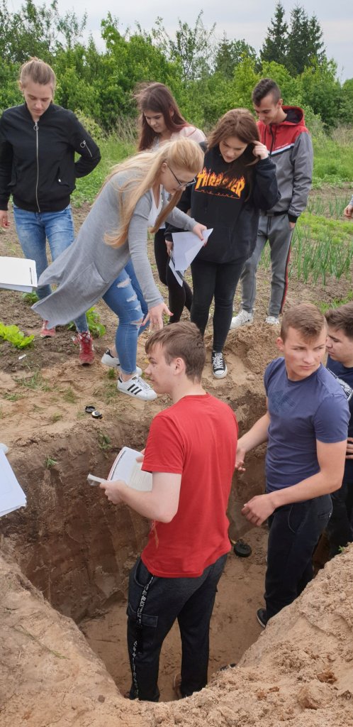 Uczniowie tej klasy realizują treści geograficzne w zakresie rozszerzonym. Zajęcia terenowe miały na celu zapoznanie uczniów z budową profilu glebowego. Nauczyciel omówił warunki powstawania gleb w regionie oraz narzędzia do badania cech chemicznych i fizycznych gleby. Uczniowie na kartach pracy określali lokalizację odkrywki, ph gleby, jej barwę, skład mechaniczny, uwilgotnienie i strukturę oraz wykonywali profil glebowy, wyróżniając poszczególne poziomy genetyczne. Dzięki sitom glebowym, określali skład i typ gleby, wielkość ziaren i klasę uziarnienia gleby. Porównywali właściwości gleby z dostępnymi w szkole próbkami gleb.