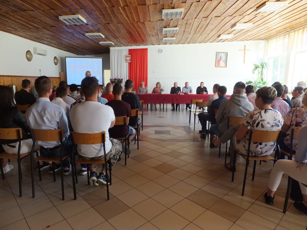 Uroczyste zakończenie roku szkolnego 2018/2019 w Zespole Szkół Zawodowych w Pasłęku zgromadziło całą społeczność szkolną i wielu zaproszonych gości. Obecni byli: Wioletta Janas – naczelnik Promocji Powiatu, Edukacji, Kultury i Sportu Starostwa Powiatowego w Elblągu, Teresa Brewka, dyrektor Poradni Psychologiczno-Pedagogicznej w Pasłęku, Przemysław Siagło – zastępca dowódcy Jednostki Ratowniczo-Gaśniczej Straży Pożarnej w Pasłęku oraz Józef Czenczak – założyciel szkoły i jej pierwszy dyrektor.