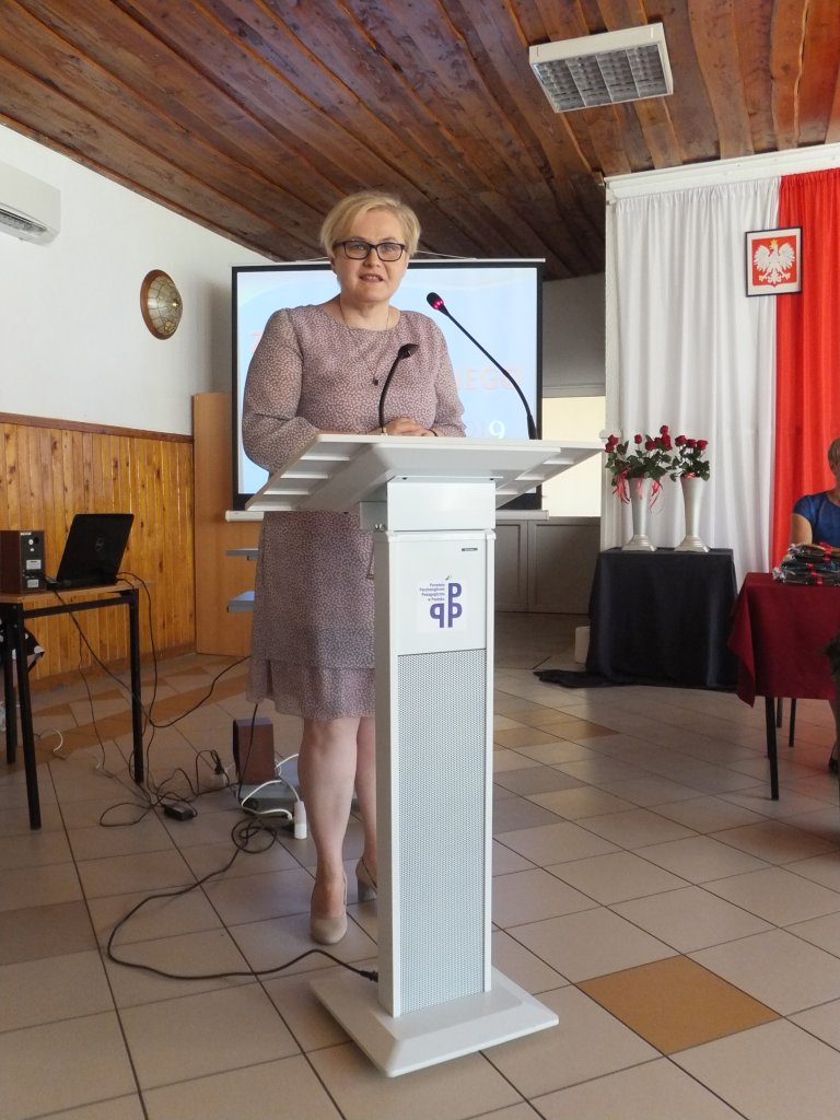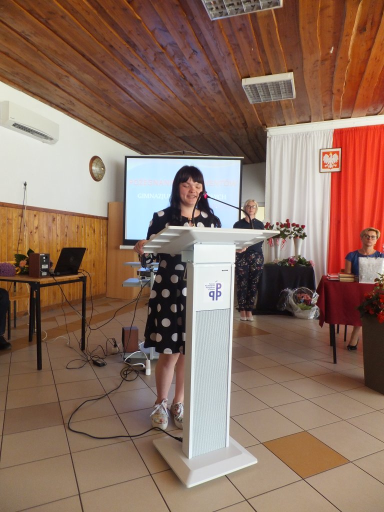 Po powitaniu przybyłych gości przez prowadzącą uroczystość Małgorzatę Wolską, głos zabrała dyrektor Maria Kizyk, która podsumowała kończący się rok szkolny, podziękowała gościom za wieloletnią współpracę i pomoc, gronu pedagogicznemu za wykonywanie swojej misji, za podejmowanie cennych inicjatyw i twórczych działań, a pracownikom administracji za sprawną organizację bieżącego funkcjonowania szkoły. Dokonała podsumowania osiągnięć absolwentów gimnazjum i szkoły podstawowej, ze szczególnym uwzględnieniem tych, którzy w całym roku szkolnym nie szczędzili trudu i wysiłku, aby rozwijać swoje talenty i umiejętności. Podziękowała także kierownictwu i pracownikom Ośrodka Szkolenia i Wychowania OHP w Pasłęku za współpracę w realizacji wspólnych celów.