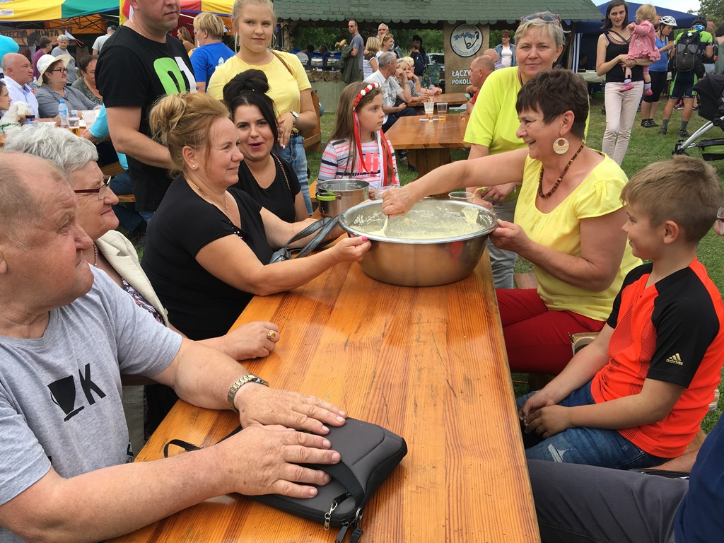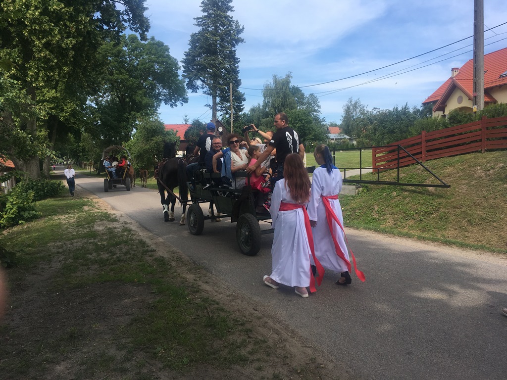 Przez cały dzień pojawiali się kolejni goście, którzy mogli wziąć udział w warsztatach, przygotowywać anielskie ruchańce i podziwiać różnorodne stoiska z ręcznymi wyrobami oraz skorzystać z przejażdżek powozami konnymi wokół wsi. Przy jednym ze stoisk można było zmielić ziarno na mąkę i wypiec z niej podpłomyki, na innym wykonać anioła w witrażu.
