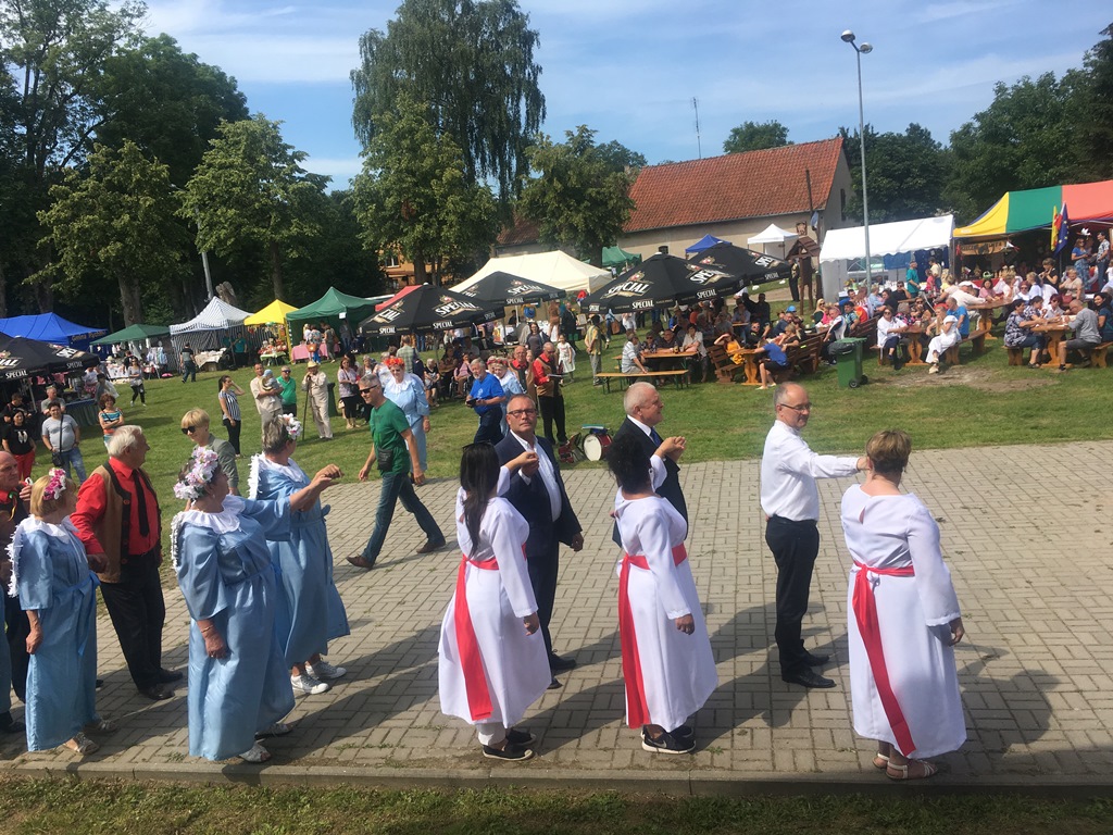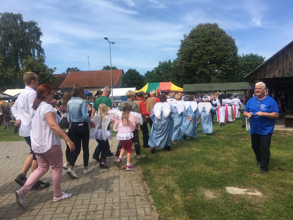 Dnia 13 lipca od rana, plenerowe miejsce spotkań zapełniało się stoiskami ze specjałami kulinarnymi i pamiątkami oraz twórczością rękodzielniczą o tematyce anielskiej. Wystawili je mieszkańcy uznanych wiosek tematycznych, aktywnych miejscowości z regionu i delegacje zza granicy. Plac zapełnił się stoiskami po brzegi. Wystawili się: Zalesie, Kazimierzowo, Rzeczna, Marianka, Jankowo, Lasowice, Godkowo, Aniołowo, Krosno, Lasowice Małe, Zimna Woda z Ukrainy. Byli z nami przedstawiciele wsi Leszczyna, Borzynowo, Stegny, Sąpy, Rogowo, Weklice, Przezmark, Zielony Grąd, Zielonka Pasłęcka i inne. Dotarło kilkudziesięciu rowerzystów, wśród nich w anielskich przebraniach.