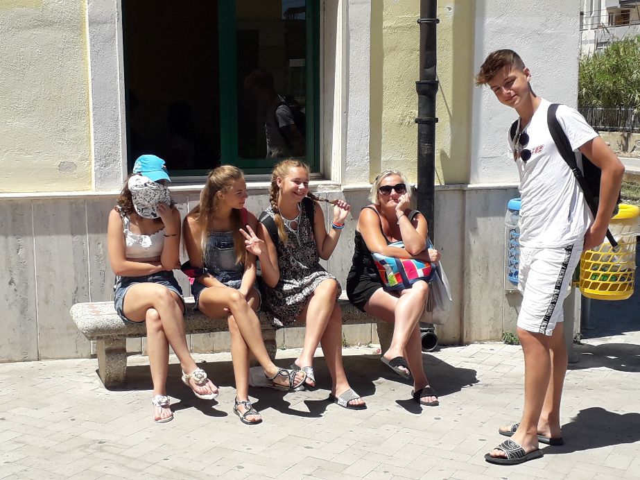 Na zaproszenie wspaniałego człowieka Luigiego Antavilla spędziliśmy dwa wspaniałe gorące tygodnie w południowej części Włoch, w rejonie Calabria w miejscowości Reggio di Calabria nad Morzem Jońskim w otoczeniu śródziemnomorskiej roślinności (u dołu włoskiego „buta”). Mieliśmy wielką przyjemność poznać kulturę, jedzenie, zwyczaje, ludzi i cieszyć ciepłem i pięknymi krajobrazami gór i mórz. Spacerowaliśmy promenadą Lingomare Falcomata, deptakiem wybudowanym z inicjatywy burmistrza Reggio. Zwiedzaliśmy zabytki miasta: Bazylikę św. Pawła, zamek Aragoński, oglądaliśmy włoskie przedstawienia w amfiteatrze. Z plaży Reggio widzieliśmy Sycylię i nie podarowalibyśmy sobie gdybyśmy nie popłynęli tam promem. Stanęliśmy na sycylijskiej Messynie, największej wyspie na Morzu Śródziemnym. Nasza aktywność nie koncentrowała się jedynie do poznania tych miejscowości. Zwiedziliśmy przepiękne stare miasteczko Scilla zwane Małą Wenecją, gdzie widok domostw układających się w Amfiteatr i ruin zamku wciśniętych w skały zamykał dech w piersiach. Spacerowaliśmy wąskimi krętymi uliczkami tej nadmorskiej miejscowości. Byliśmy również w turystycznej miejscowości Tropena, przepiękne widoki zamku położonego na piaskowcu kilkadziesiąt metrów n.p. Morza Tyrreńskiego. Przecudny kolor lazurowego morza z olbrzymimi falami pozostanie na długo w pamięci. Nie obyło się bez bólu, musieliśmy uważać na meduzy, które niejednemu zrobiły psikusa...i poparzyły. Próbowaliśmy granity, pysznych włoskich lodów, arancini, różnych włoskich pizz i przysmaków. Zmęczeni ale jakże zadowoleni po prawie dwóch tygodniach wróciliśmy do Polski.
