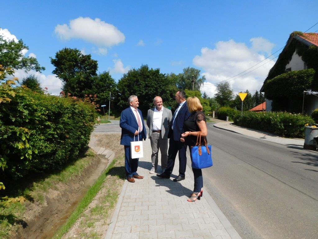 - oporniki drogowe wtopione na ławie betonowej po jednej stronie jezdni natomiast od strony chodnika krawężnikiem drogowym na ławie betonowej;