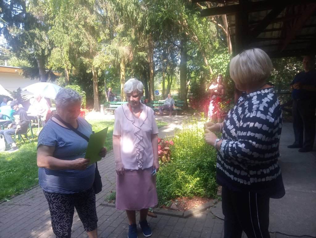 Pogoda i nastroje uczestnikom dopisały. Organizatorzy zapewnili nam nie tylko słodki poczęstunek, ale także pyszny bigos i grochówkę. Na zakończenie turnieju uczestnicy z rąk dyrektor DPS „Krokus” we Władysławowie otrzymali dyplomy i statuetki. Nasze mieszkanki, mimo że nie zajęły żadnego z czołowych miejsc, dobrze się bawiły.