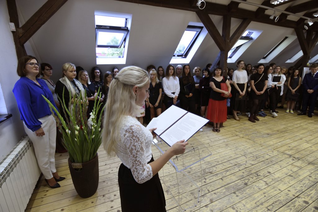 Uroczystość rozpoczęła się odśpiewaniem hymnu państwowego, po którym głos zabrała dyrektor szkoły. Przywitała młodzież i życzyła wielu dydaktycznych sukcesów oraz satysfakcji ze zdobywania wiedzy i umiejętności. Słowo do licealistów i nauczycieli skierowała także Wioletta Janas, która życzyła młodym ludziom powodzenia w nowym roku szkolnym, a kadrze pedagogicznej wielu sukcesów i satysfakcji z wykonywanej pracy, po czym wręczyła uczniom stypendia Starosty Elbląskiego za szczególne osiągnięcia w nauce za II semestr roku szkolnego 2018/2019.
