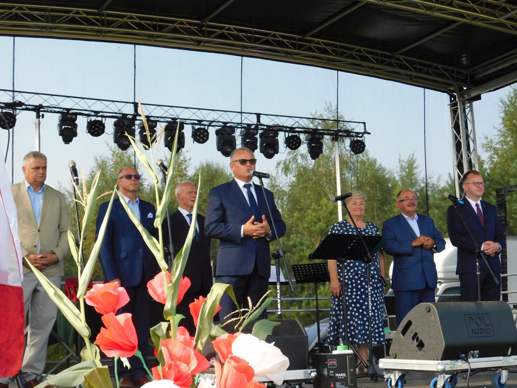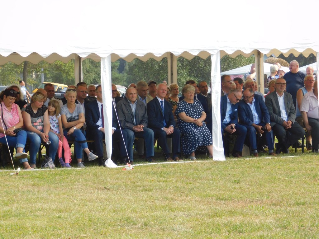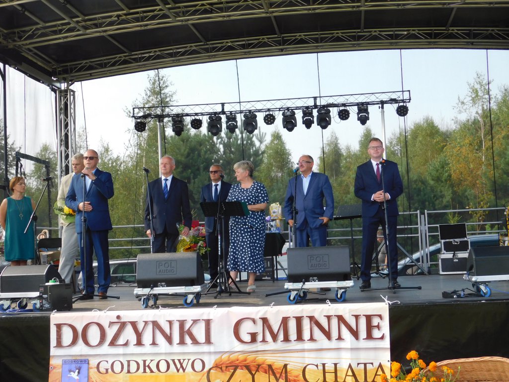 W części oficjalnej starostowie dożynek – Beata i Dariusz Kalińscy przekazali wójtowi Andrzejowi Bondarukowi chleb – symbol urodzaju i dostatku. Wójt dziękował rolnikom za włożony trud w codzienną pracę, po czym wspólnie z przewodniczącym Rady Tomaszem Borkowskim, dzielił chleb z uczestnikami imprezy.